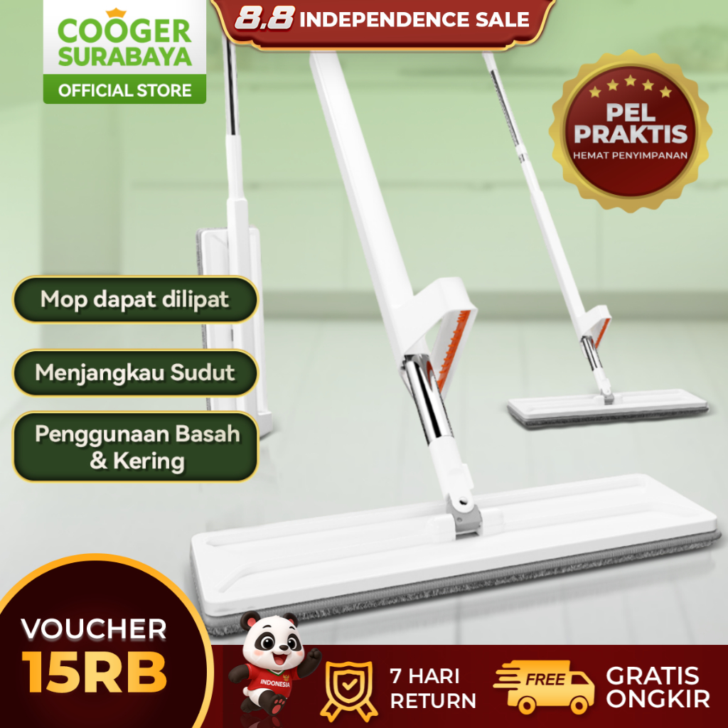 COOGER SURABAYA Alat Pel Peras Cuci Otomatis Standing Mop Anti Karat Kain Microfiber Lebar Tebal