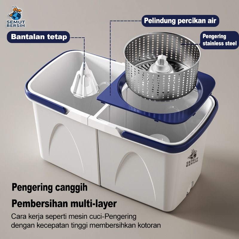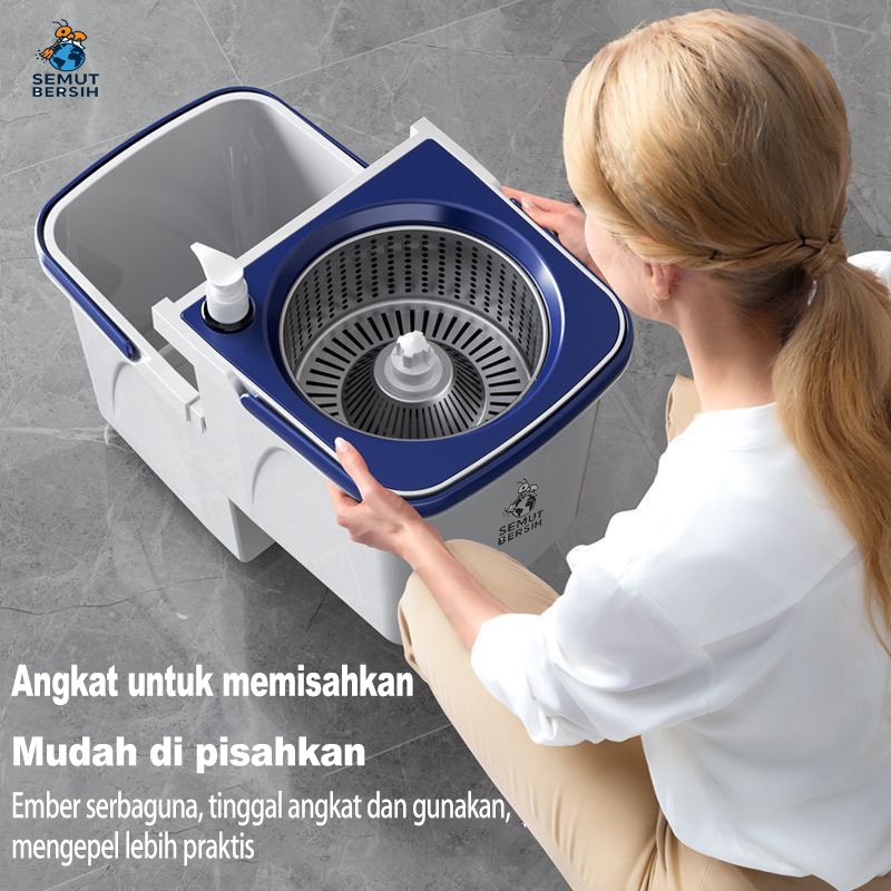 SEMUT BERSIH | Pel Lantai 2 in 1 | Spin Mop | Pel Lantai Putih 2 Sisi Terpisah Double Side | Mop Kain Mikrofiber