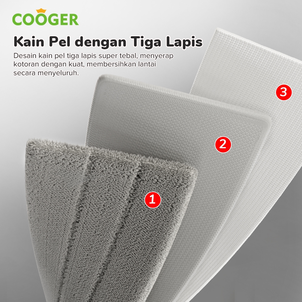 [Bundling] COOGER Homeliving Alat Pel Lantai+Wiper & Sikat 3in1+Wiper Gagang Panjang Pembersih Jumbo Pel 42 Cm Free Scra