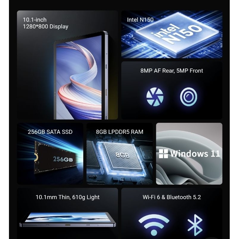 Chuwi Hi10 X1 2025 Intel N150 8/256GB SSD Tablet PC 10.1" Wifi6 Windows 11