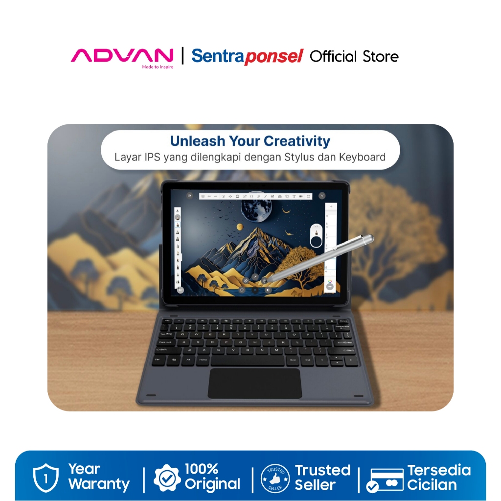 Advan Tab Sketsa 3 Layar 10.1” HD IPS RAM 6GB/128GB Tiger T606 Android 13 Dual Sim Card Free Keyboard & Stylus Pen - Garansi Resmi