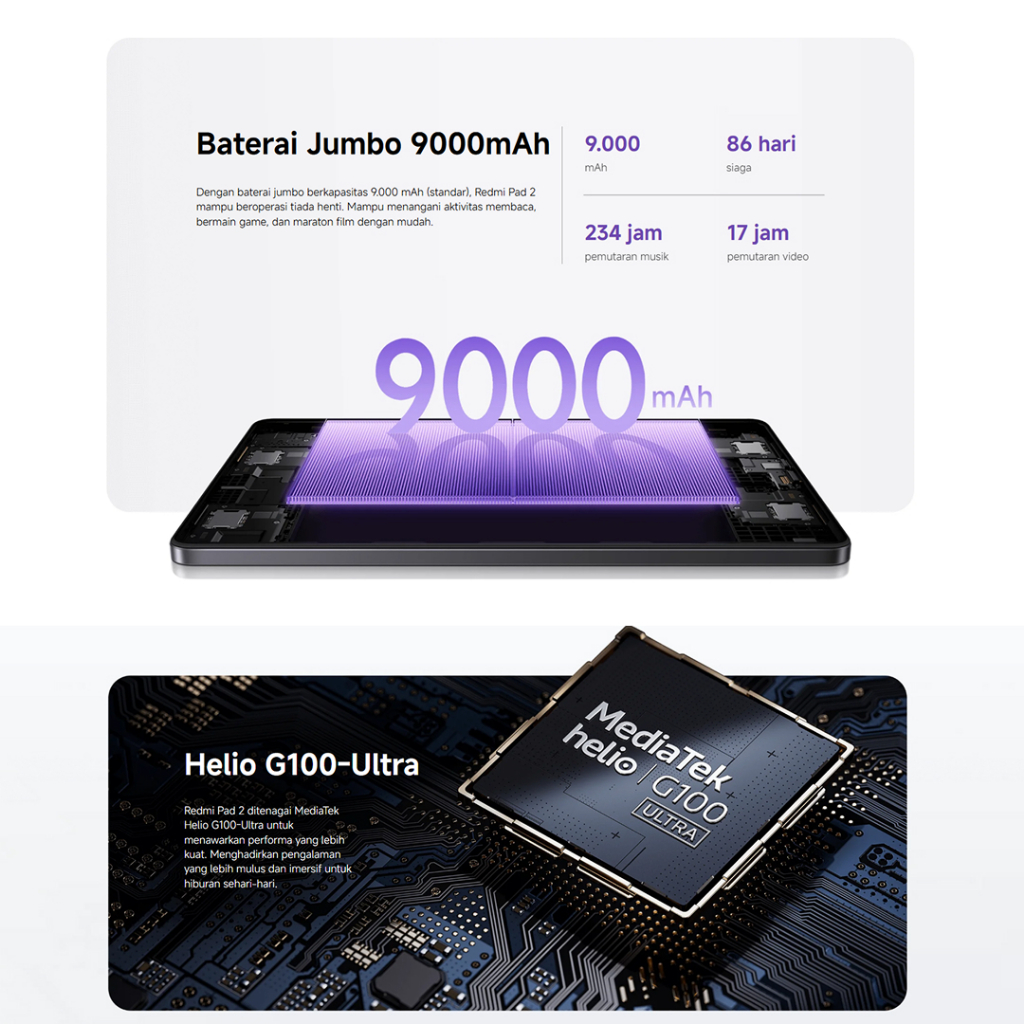 Redmi Pad 2 11 Inch 4GB 128GB 90Hz Xiaomi HyperOS 2 MediaTek Helio G100-Ultra Baterai 9000mAh Kamera 8MP