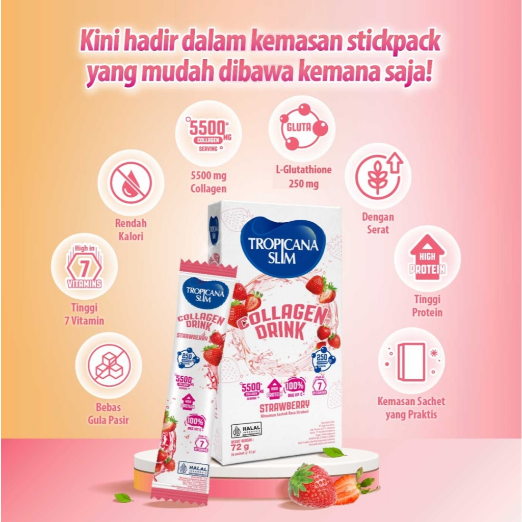 TROPICANA SLIM COLLAGEN DRINK STRAWBERRY STICK6 SACHET) - KOLAGEN BEBAS GULA DENGAN GLUTATION