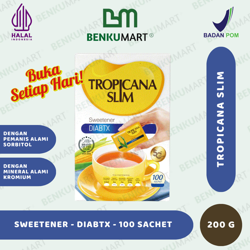 TROPICANA SLIM SWEETENER DIABTX 100 SACHET X 2 gr200 GR) - PEMANIS UNTUK DIABETESI