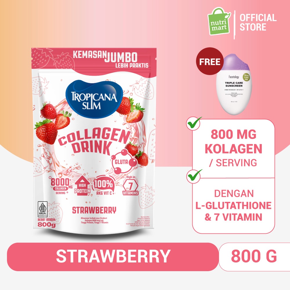 TROPICANA SLIM COLLAGEN DRINK STRAWBERRY 800G DENGAN GLUTATION - KOLAGEN BEBAS GULA DENGEN RASA STRAWBERRY NIKMAT UNTUK KESEHATAN DAN KEKENYALAN KULIT GLUTATHIONE