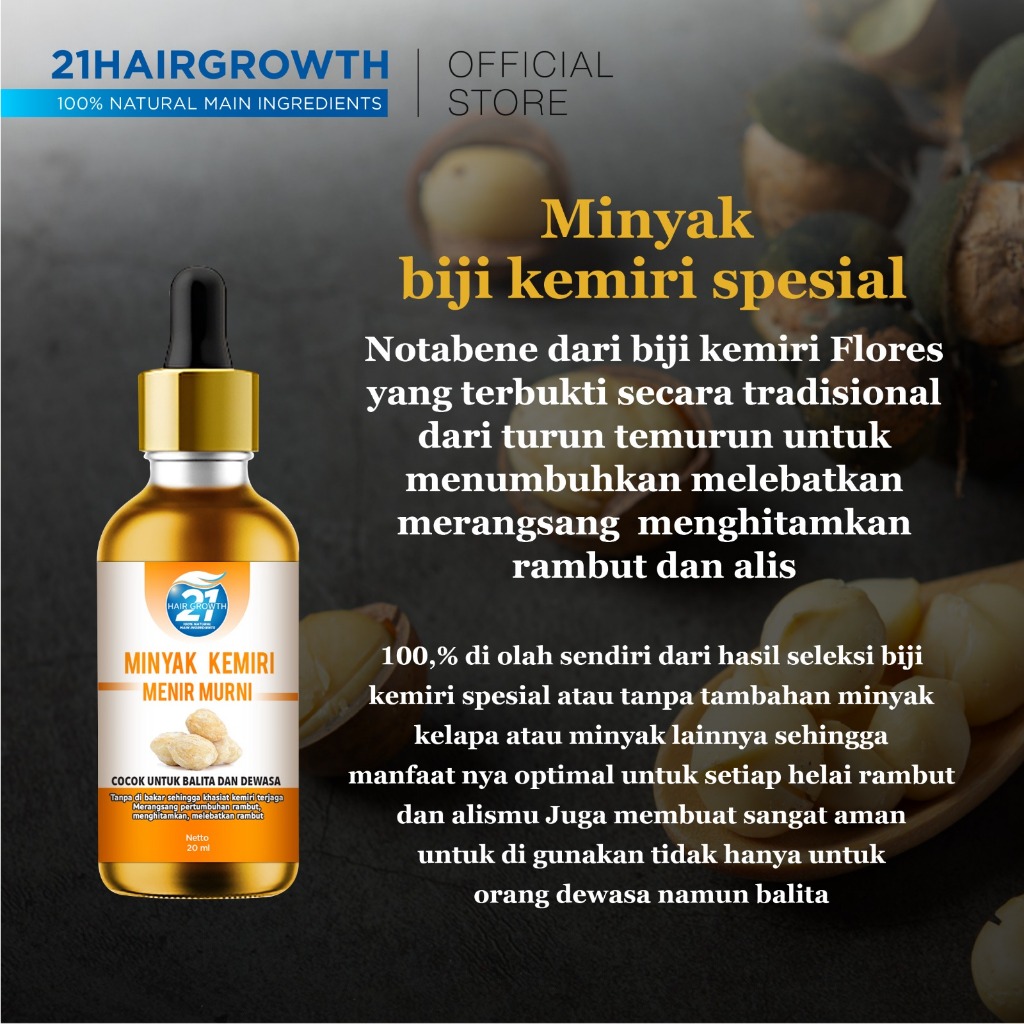 21 Hair Growth - Paket Bundling Minyak Kemiri - Minyak kemiri - Shampoo Minyak Kemiri- Tonik Minyak Kemiri - Shampoo Min