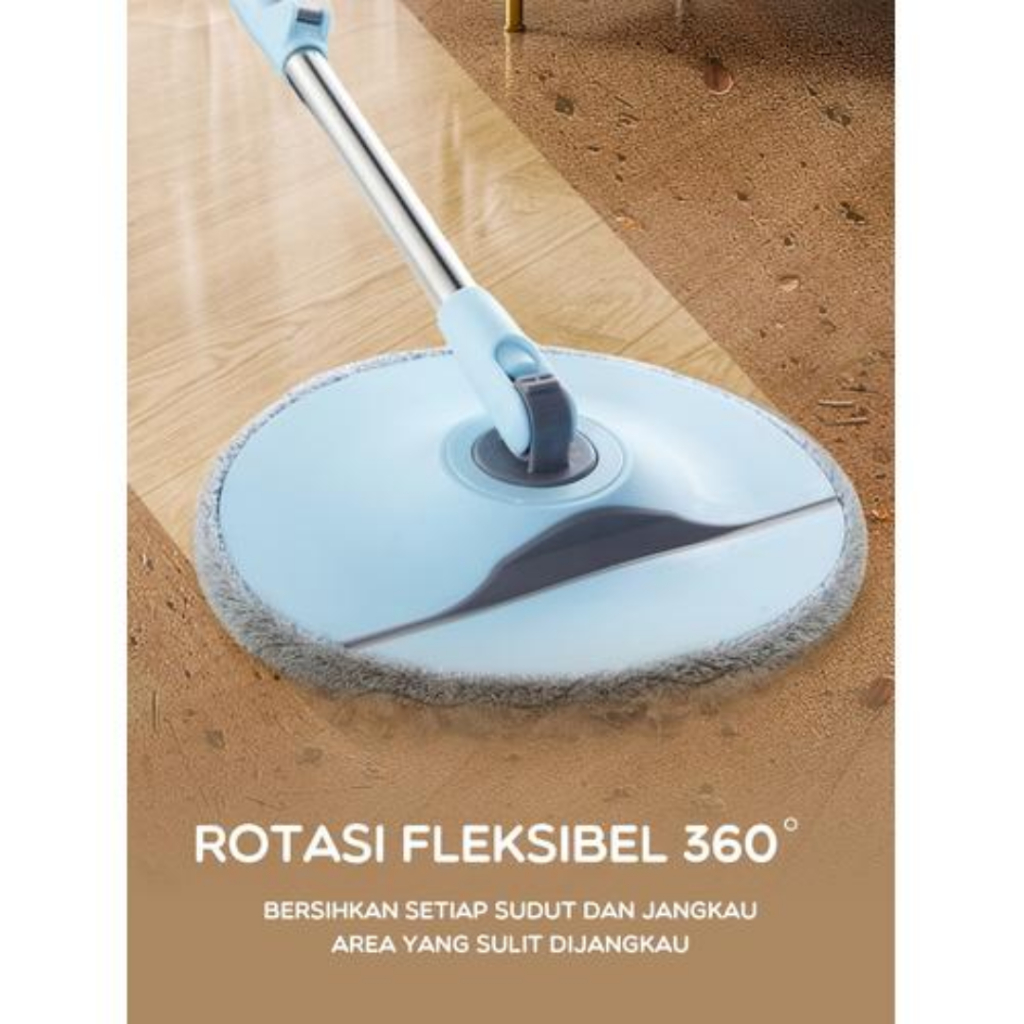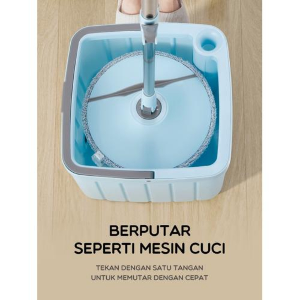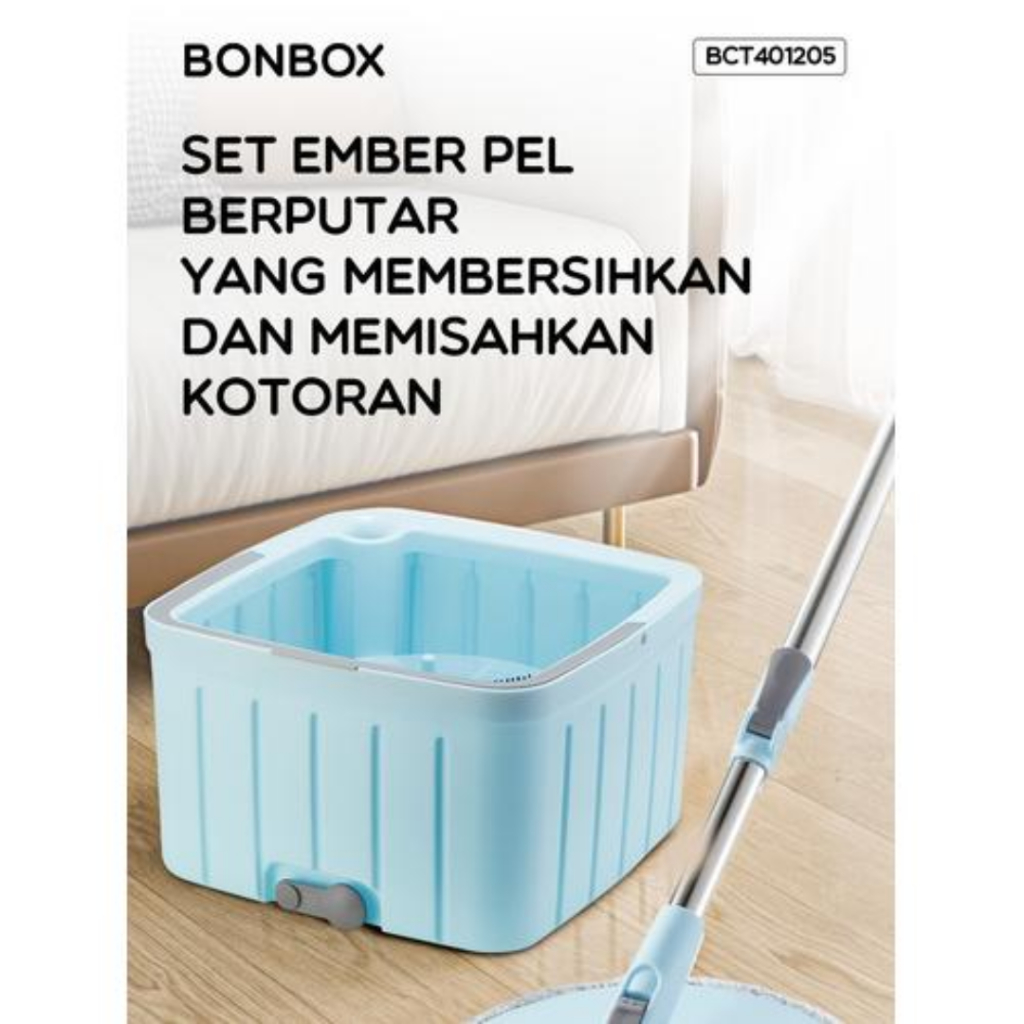 BONBOX BCT401205 Alat Pel Lantai Spin Mop Putar Kain Fiber dengan Ember Biru Muda