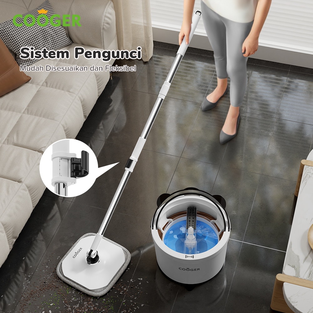 (Free Sikat 2IN1) COOGER Alat Pel Lantai 2in1 Putar Single Bucket Bentuk Panda Pemisah Air Kotor Dan Air Bersih Pel