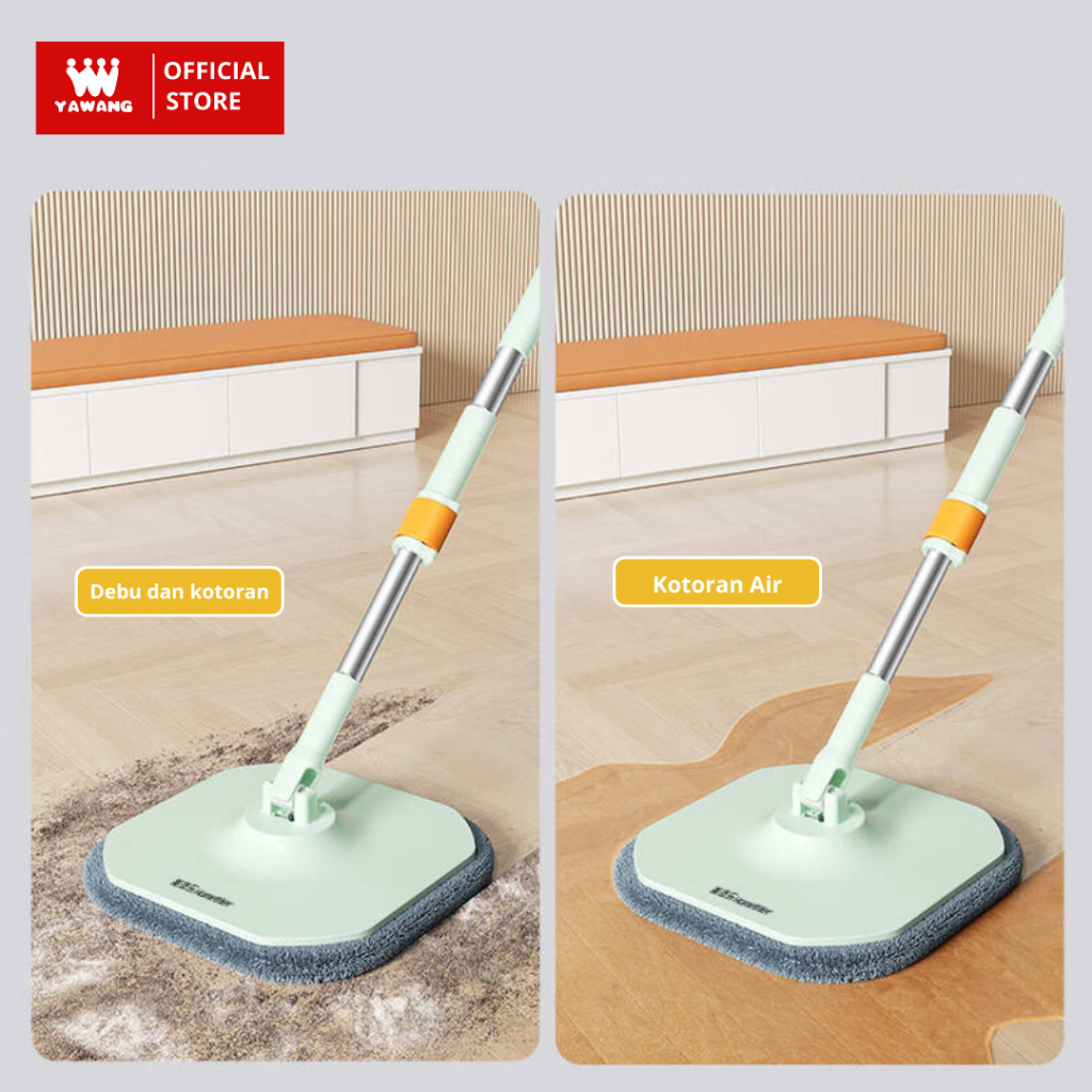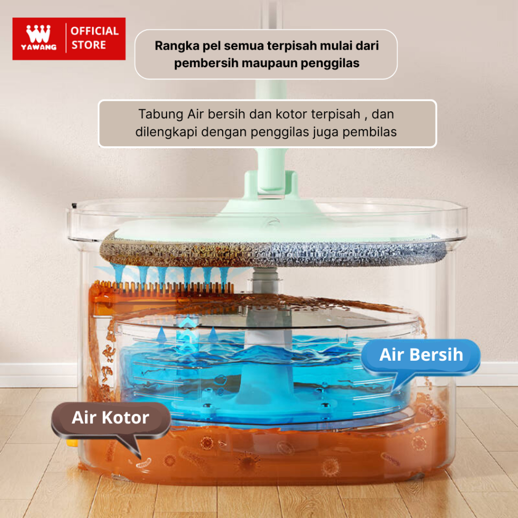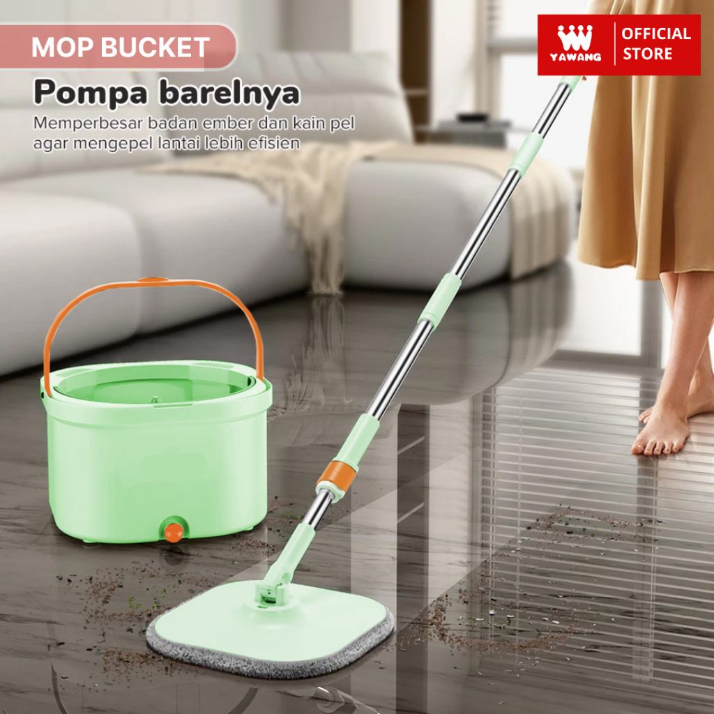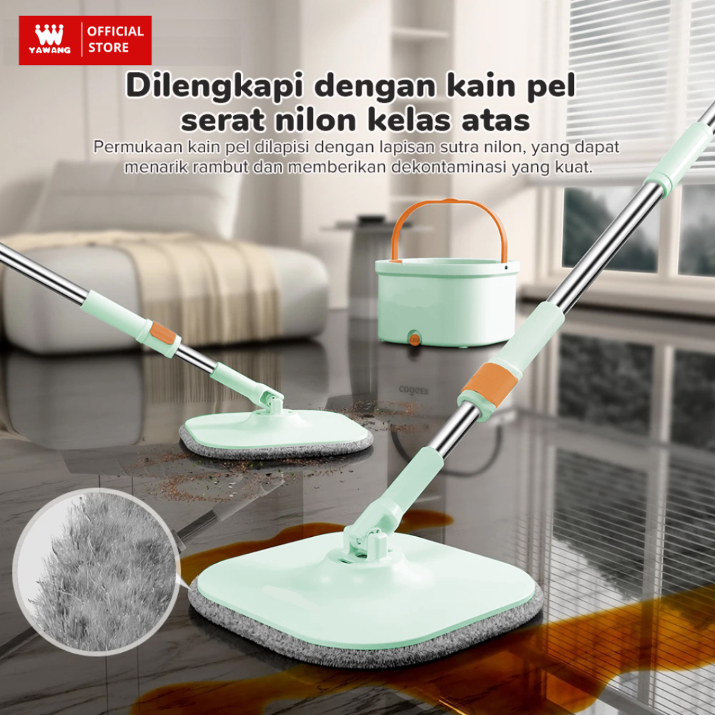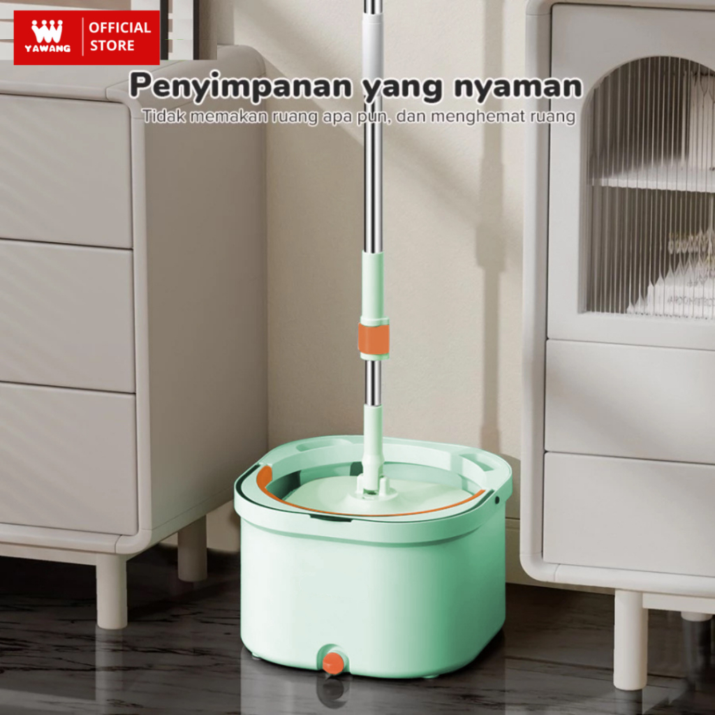 YAWANG Indonesia Alat Pel Peras Lantai Stainless Otomatis MOP Bucket Bulat 2in1 Kain Fiber Spin MOP Praktis dengan Ember