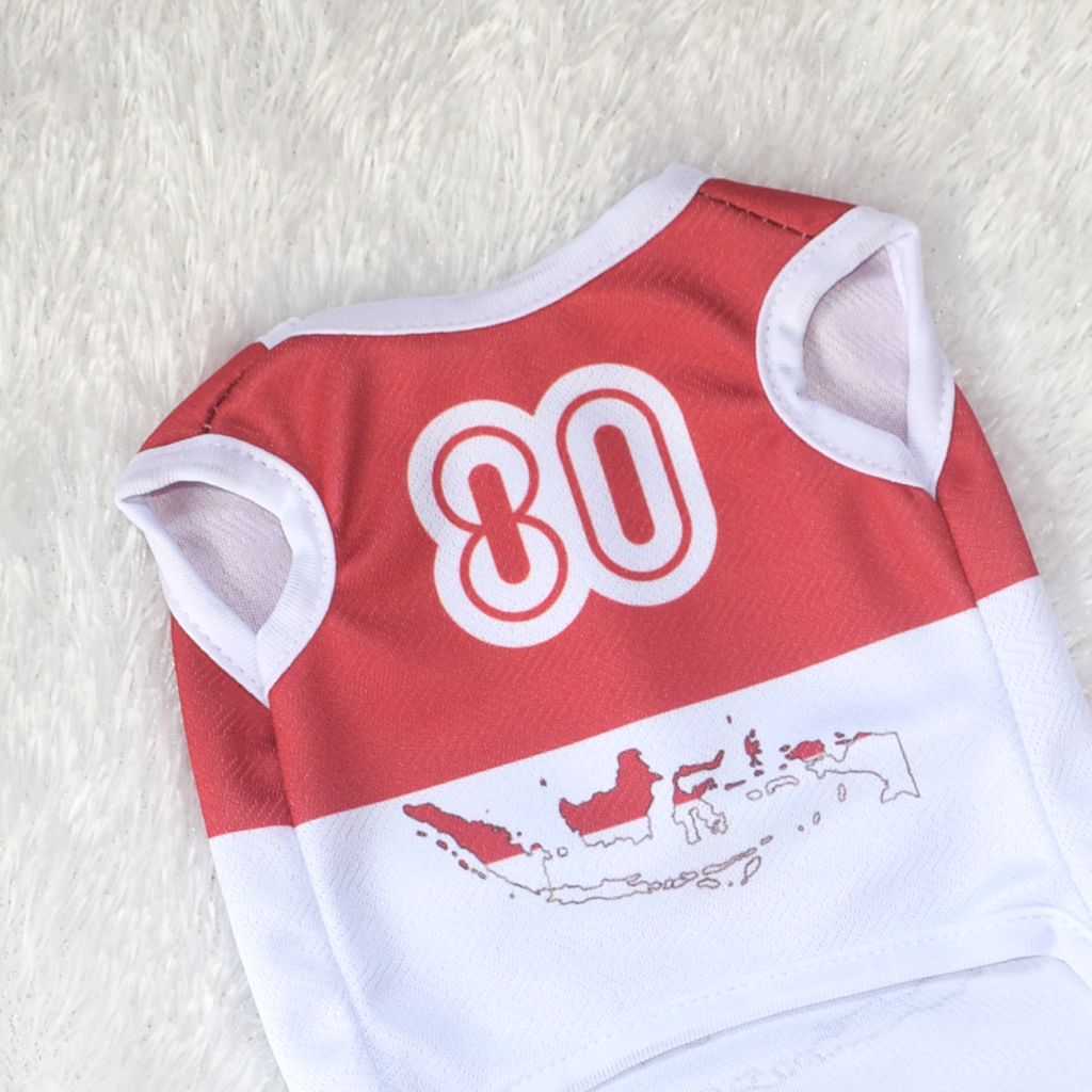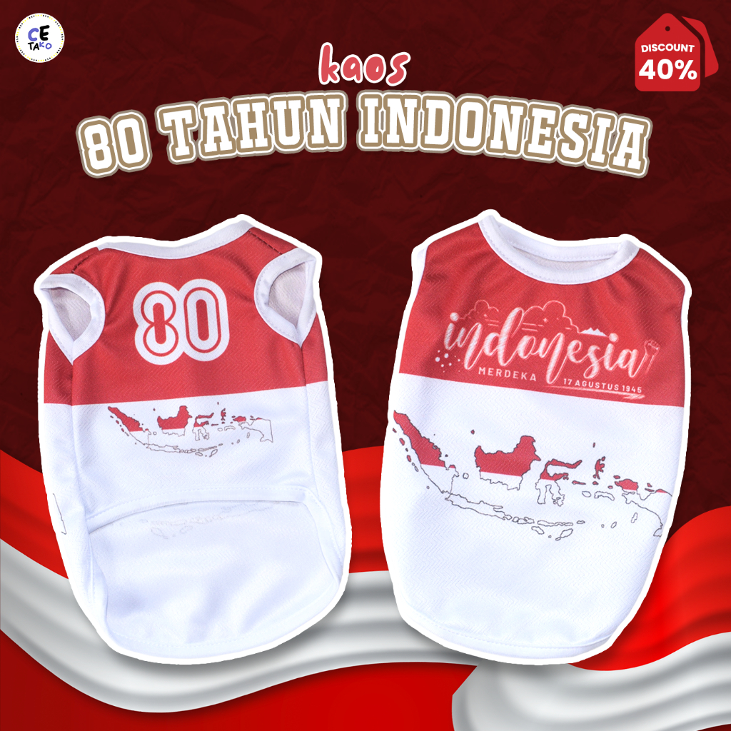 Baju Kucing Lucu Kaos HUT 80 Tahun Indonesia Untuk Kucing Anjing Monyet