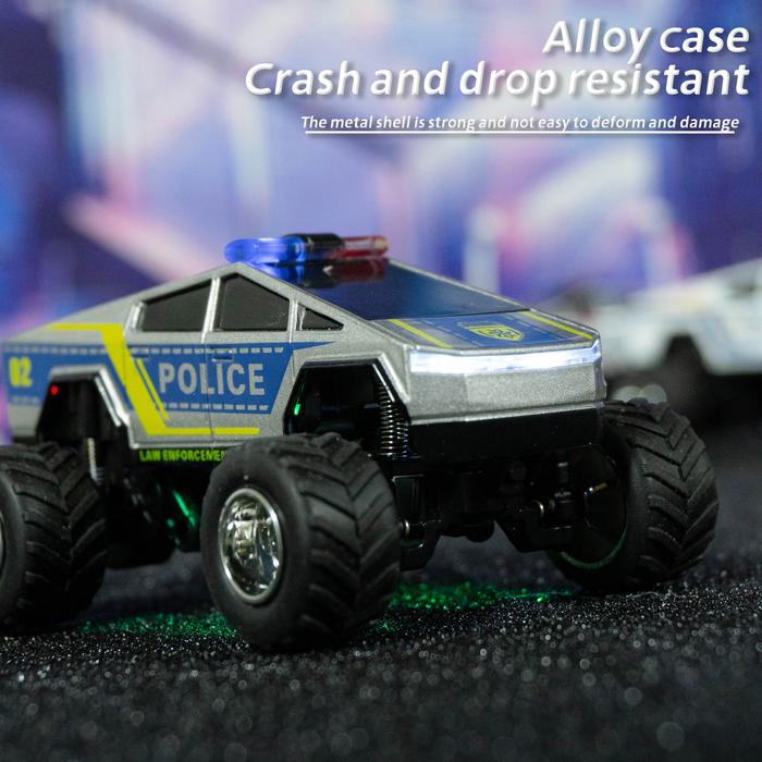POKO 1/64 Mini RC Monster Cybertruck Polisi - Truk Off-Road Metal Keren dengan Sirene & Lampu