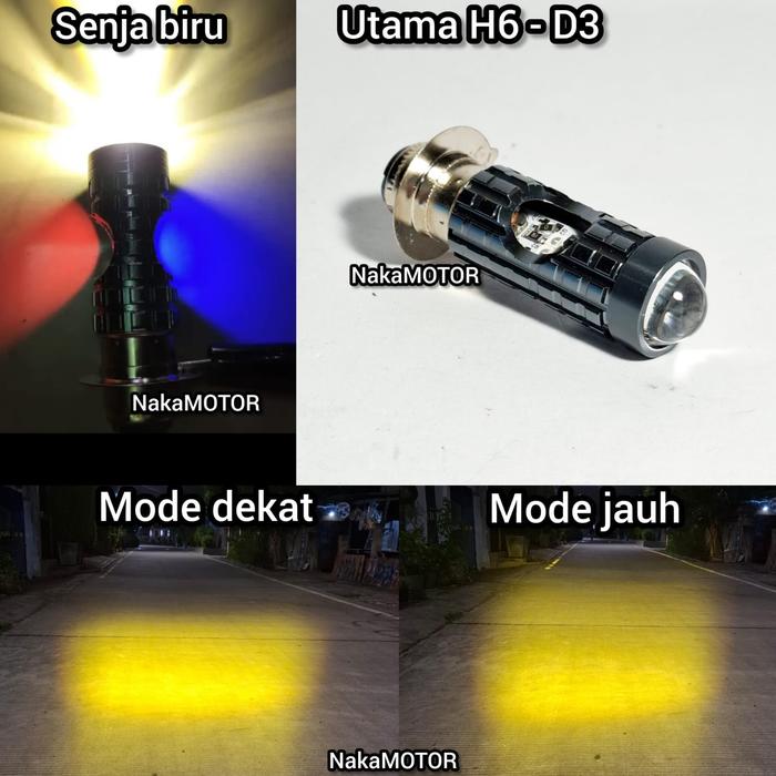 BEST PRODUK ! CR7 LAMPU UTAMA LED H6 D3 TIPE LASER SENJA BIRU HIGH LOW - 1030 - PUTIH KUNING ORI