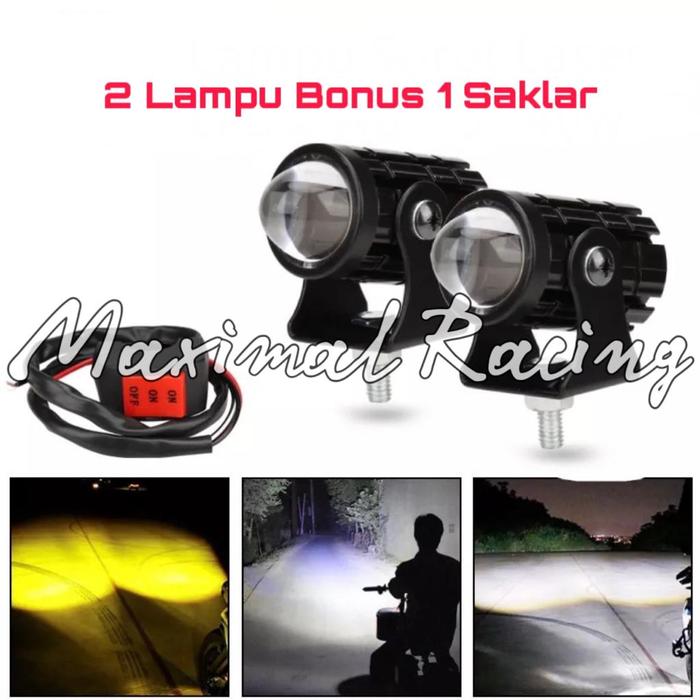 BEST PRODUK ! LAMPU TEMBAK LASER MOTOR MOBIL D2 MINI SUPER TERANG 1 PAKET PLUS SAKLAR - 1 LAMPU, PUTIH-KUNING ORI