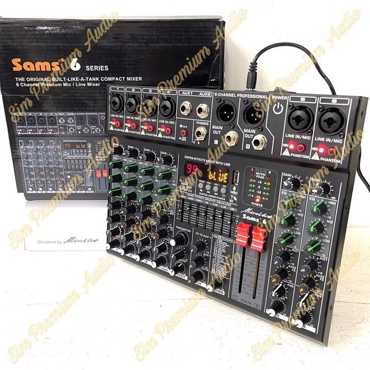 mixer audio microverb sams6 sams 6 6channel usb bluetooth soundcard ORIGINAL (BISA )