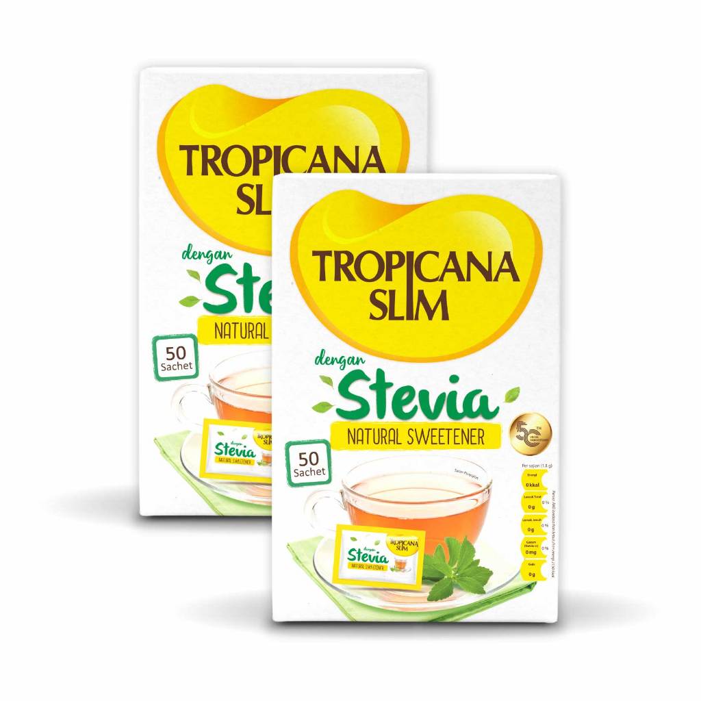 TWIN PACK - TROPICANA SLIM SWEETENER STEVIA 50 SACHET - PEMANIS ALAMI UNTUK BATASI GULA