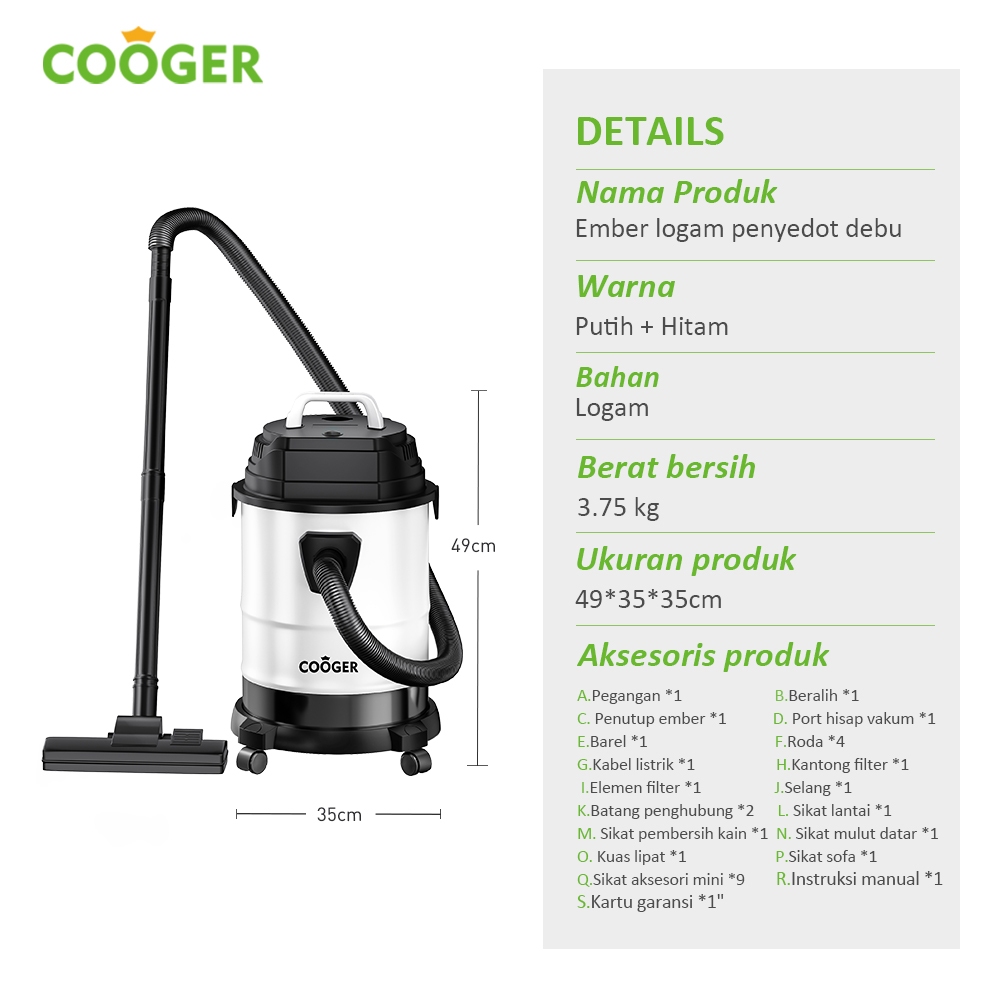 COOGER Vacuum Cleaner Pro 18 Liter Basah Kering Dan Alat Pel Lantai Pemisah Air Kotor Bersih Panda