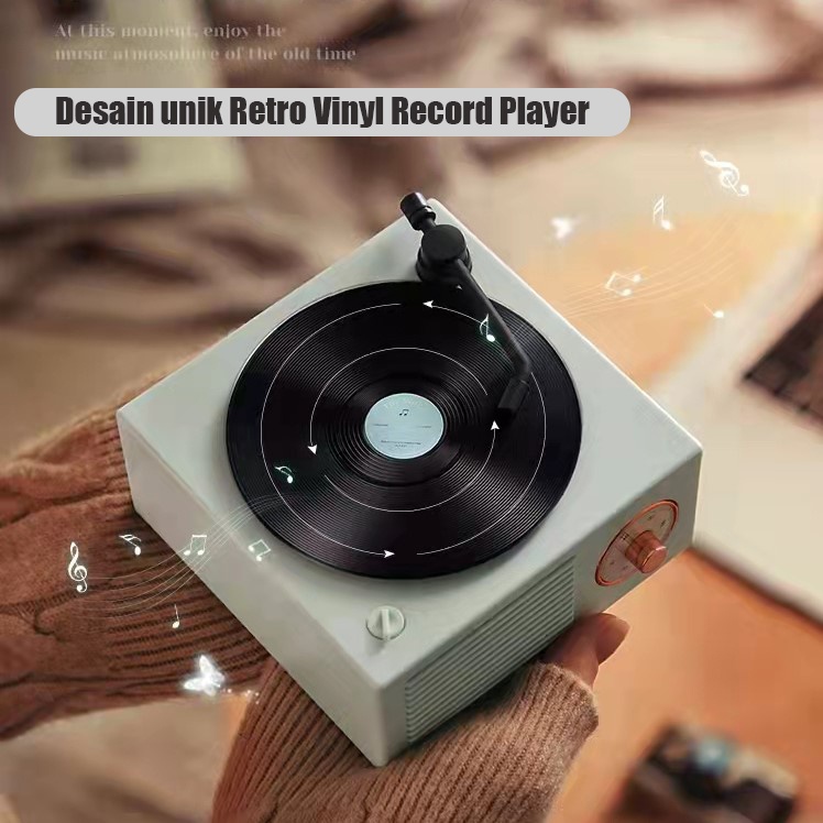 SPEAKER RETRO BENTUK VINYL RECORD PLAYER WIRELESS BLUETOOTH SUBWOOFER AUDIO CERDAS HADIAH PACAR