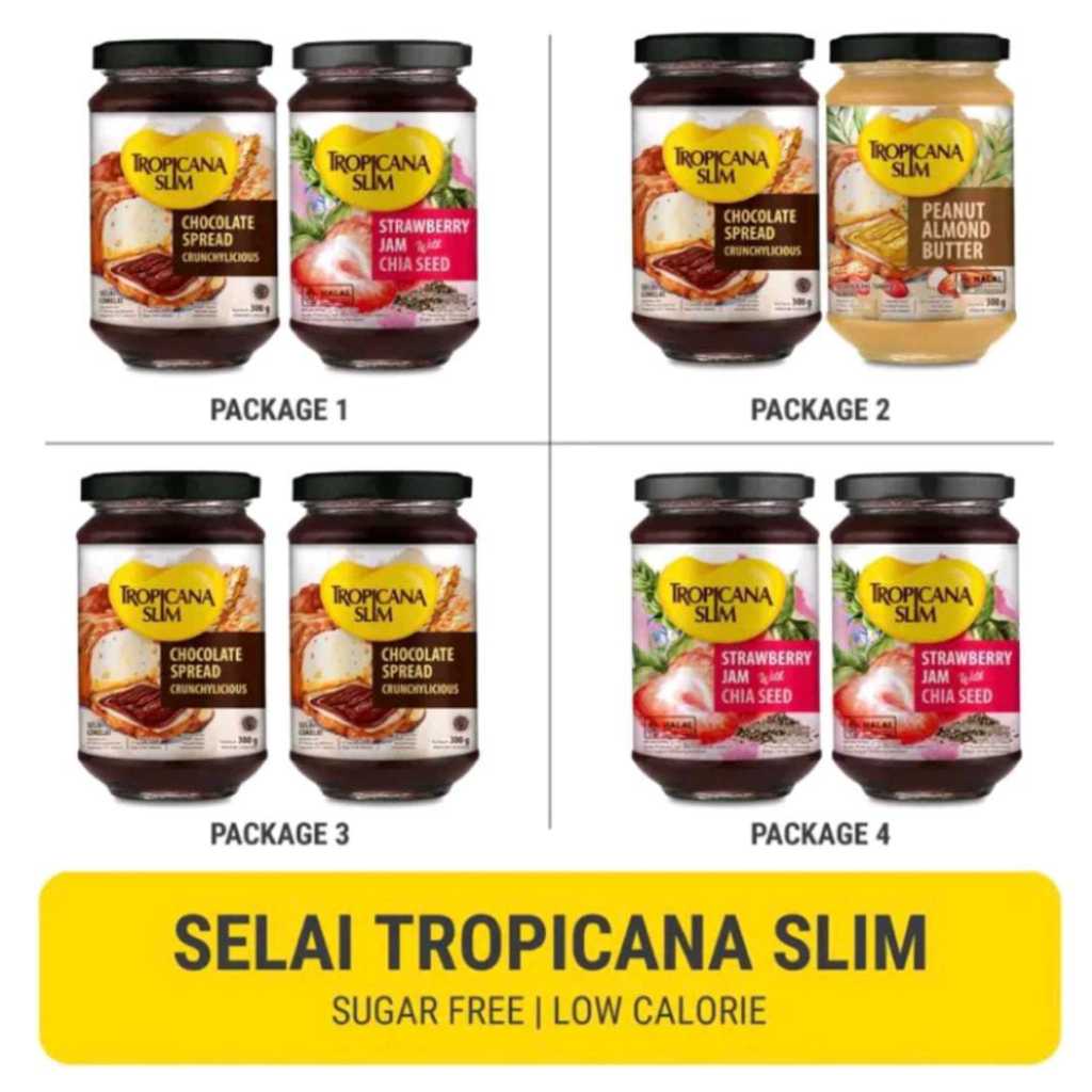 TROPICANA SLIM SELAI TWIN PACK CHOCOLATE SPREAD / PEANUT ALMOND BUTTER 300GR / STRAWBERRY