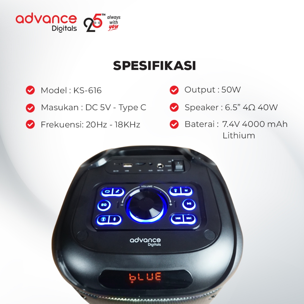 ADVANCE DIGITALS AUDIO SPEAKER KS-616 6,5 INCH DUAL MICROPHONE WIRELESS BERGARANSI RESMI 1 TAHUN