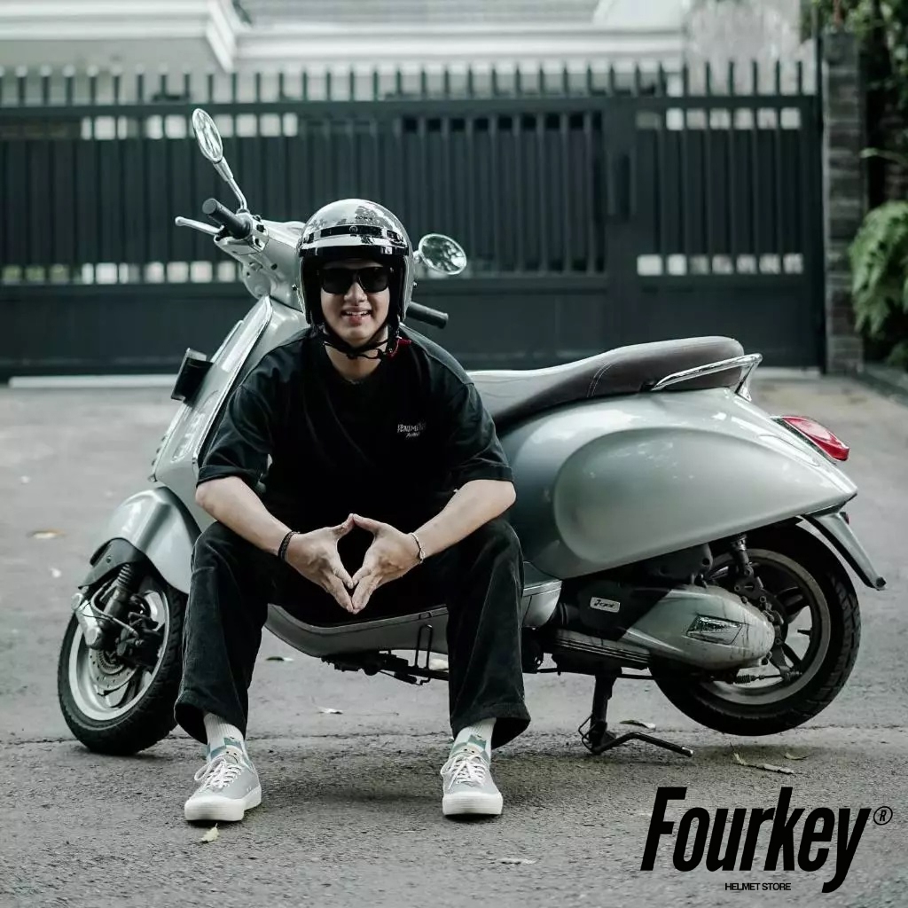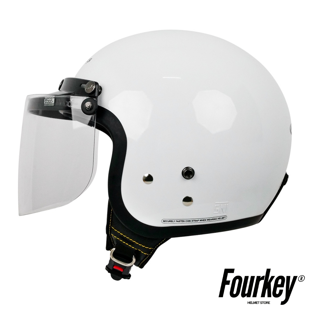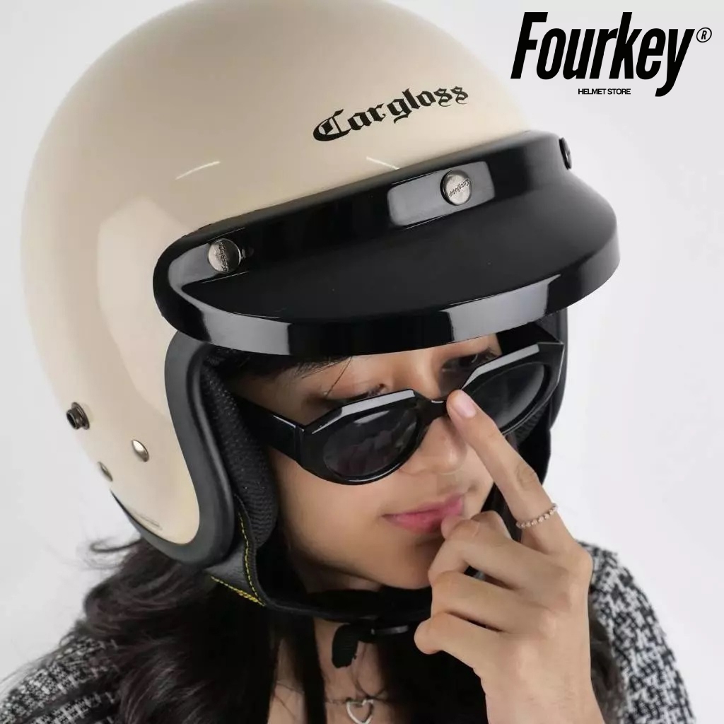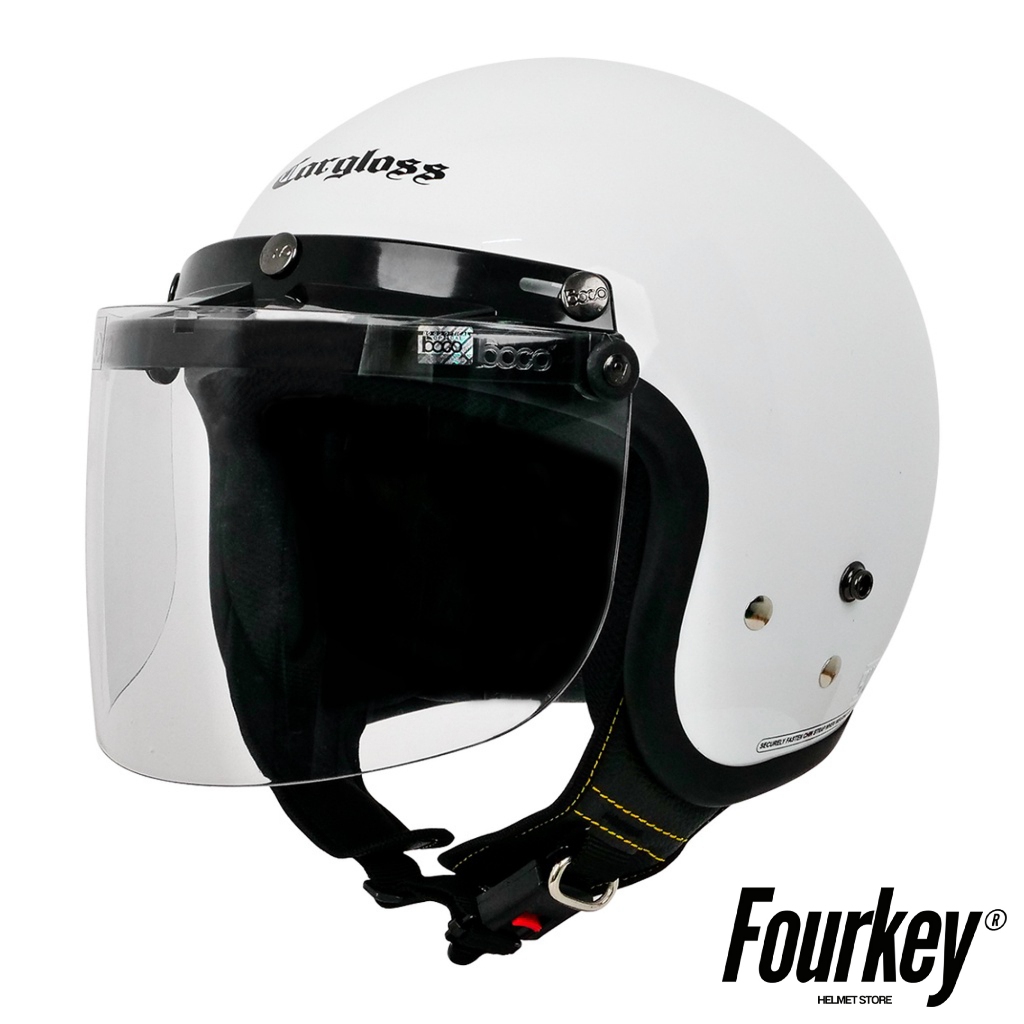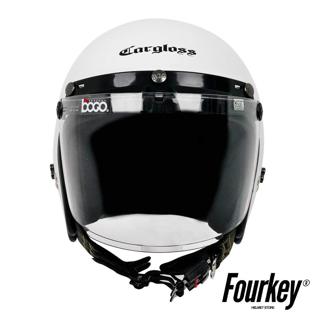 Helm Bogo Carglos Retro Putih Dewasa Premium SNI Kaca Datar Motorcycle