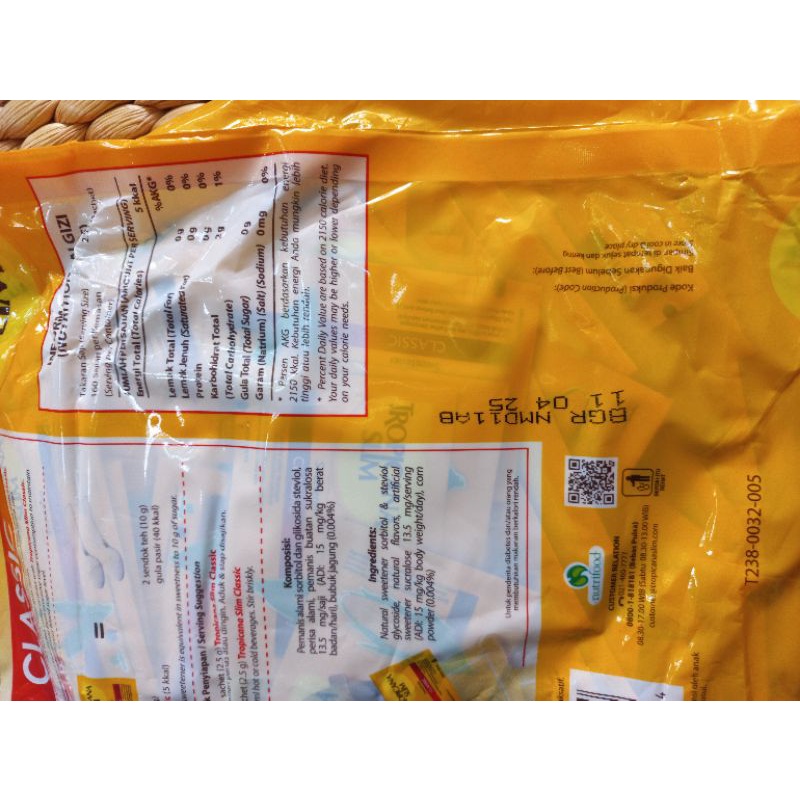 TROPICANA SLIM CLASSIC 160 SACHET 2,5 gr - SWEETENER / GULA JAGUNG RENDAH KALORI