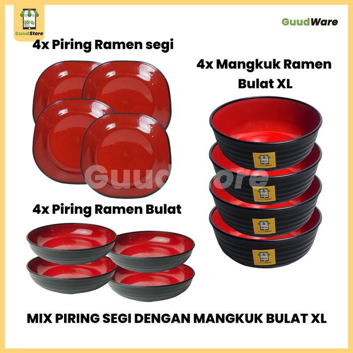 (PAKET 1 LUSIN) PAKET RAMEN PIRING MIX DENGAN MANGKUK BULAT XL Dapur PLASTIK PP 5