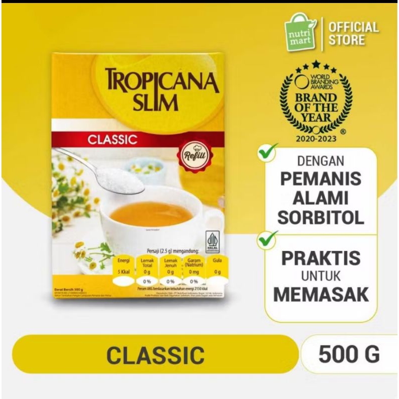 TROPICANA SLIM CLASSIC KLASIK 500 G GR 500G 500GR REFILL PEMANIS BUATAN RENDAH KALORI SWEETENER