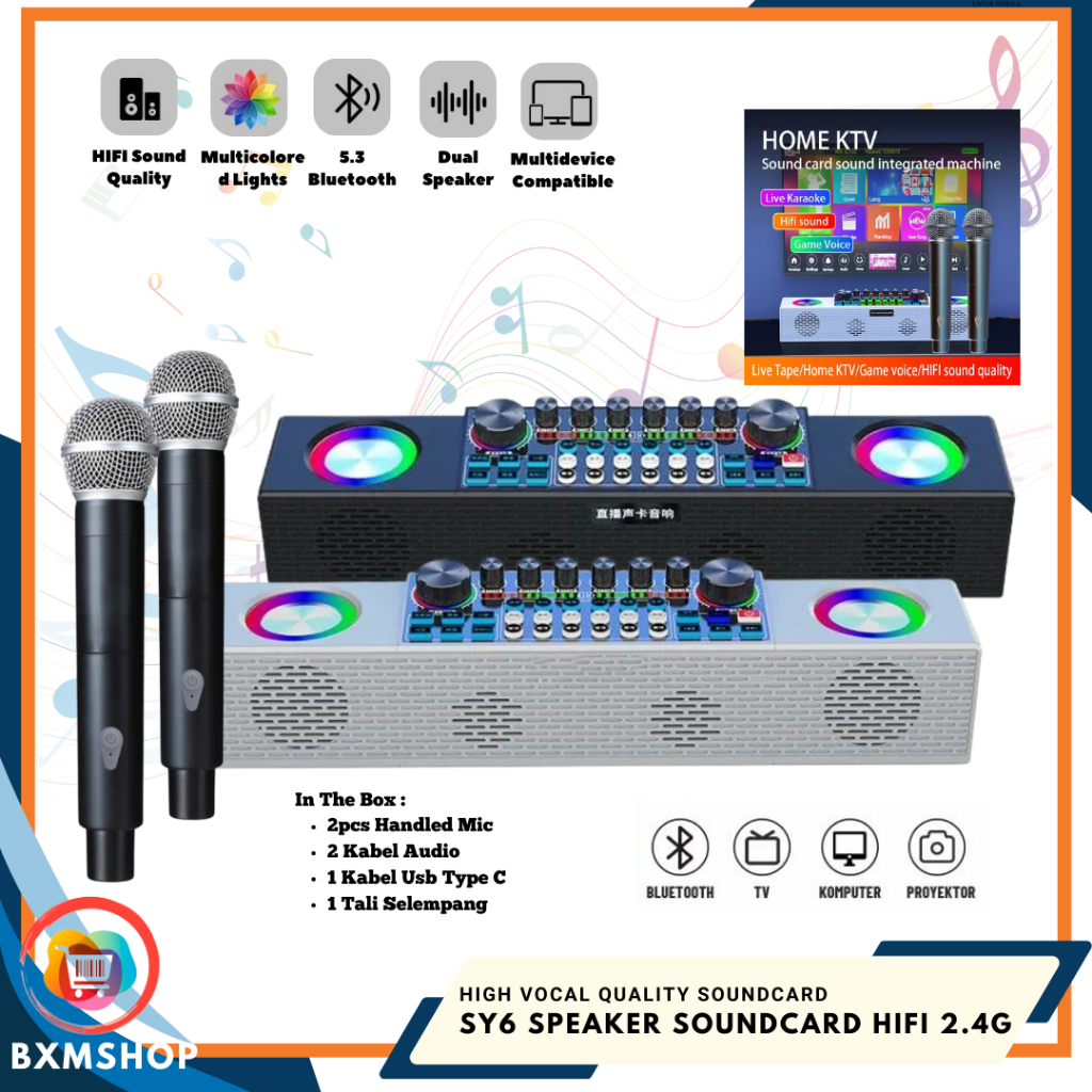 LIVE SOUNDCARD SY6 SOUNDCARD BLUETOOTH SPEAKER ALL-IN-ONE + TWO WIRELESS MICROPHONE KARAOKE