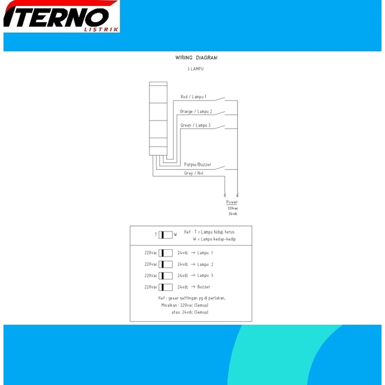 LAMPU MENARA SIGNAL TOWER LIGHT LED BUZZER 3 LAMPU MULTIVOLT ITERNO