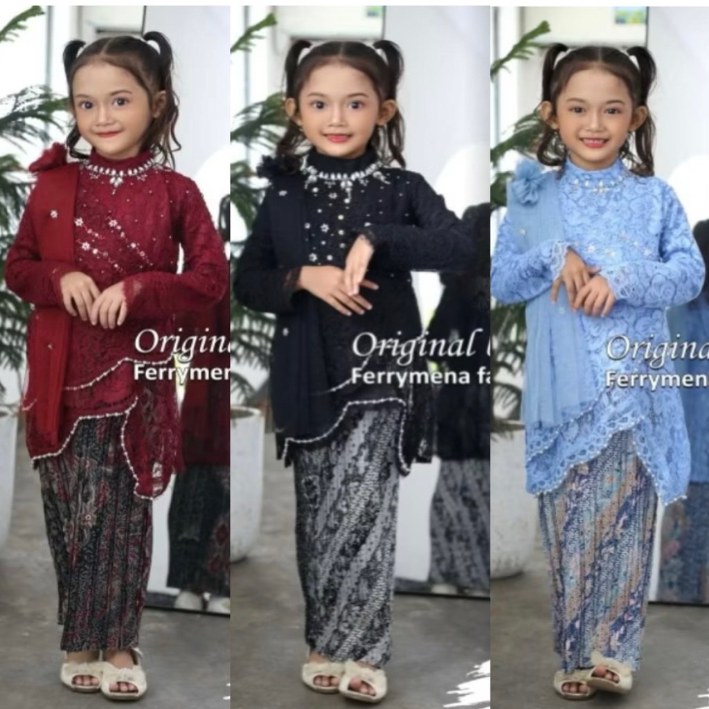Promo Diskon Setelan Baju Kebaya Anak Perempuan / Kebaya Wisuda Anak Selendang / Kebaya Modern / Baju Kebaya Anak Bruka