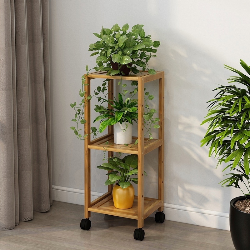 Rak Sudut Multifungsi Kayu dengan Roda - Untuk Buku, Tanaman & Penyimpanan