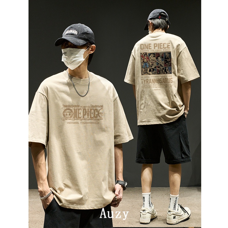 AUZY Jepang Kartun One Piece Luffy Anak topi jerami kaos pria wanita atasan Lengan Pendek T-shirt skena baju oversize