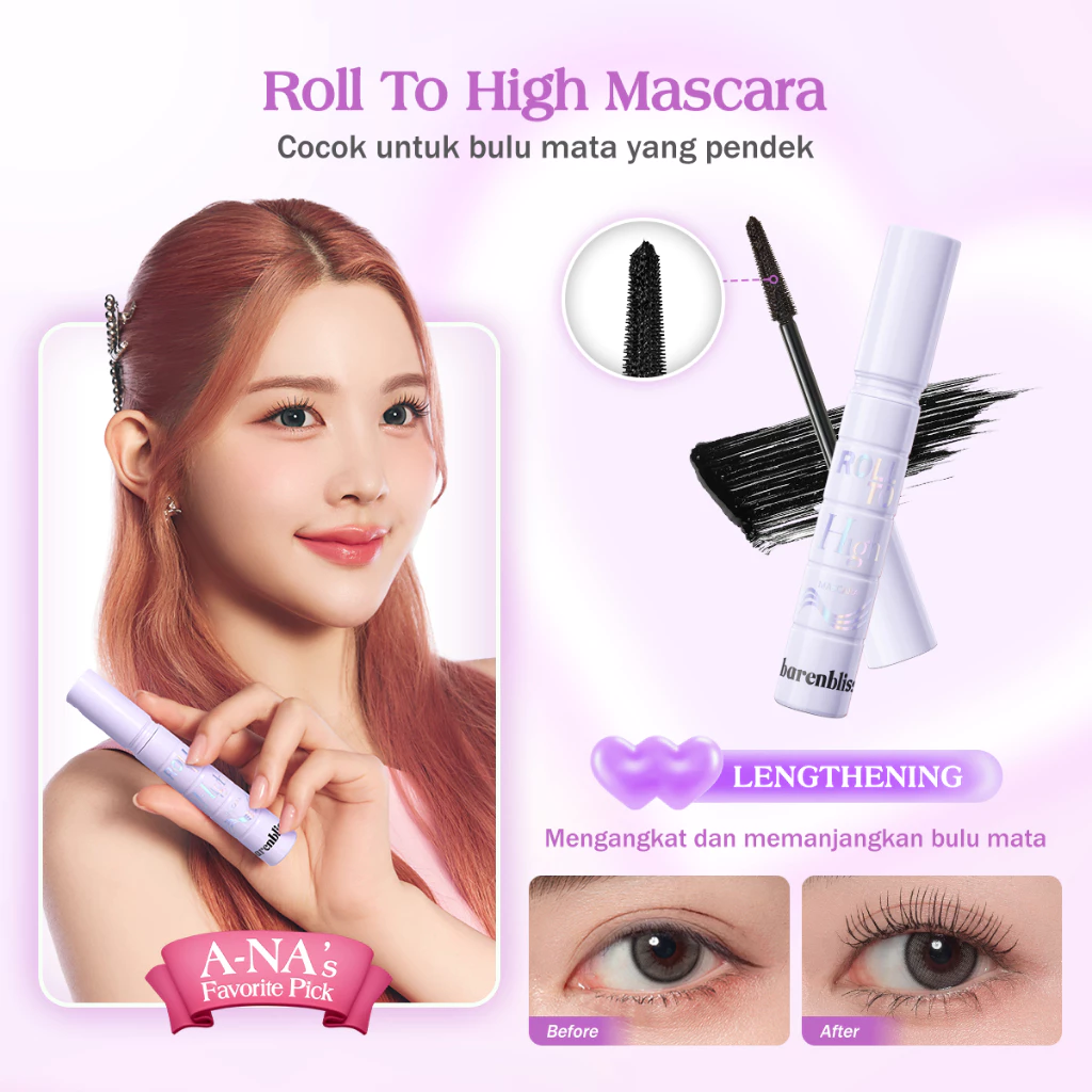 barenbliss High To Volume Mascara Long Lasting Waterproof Smudgeproof Maskara dengan Vitamin E