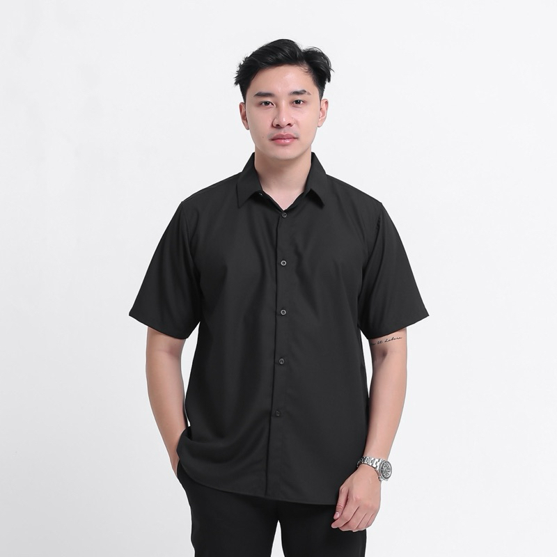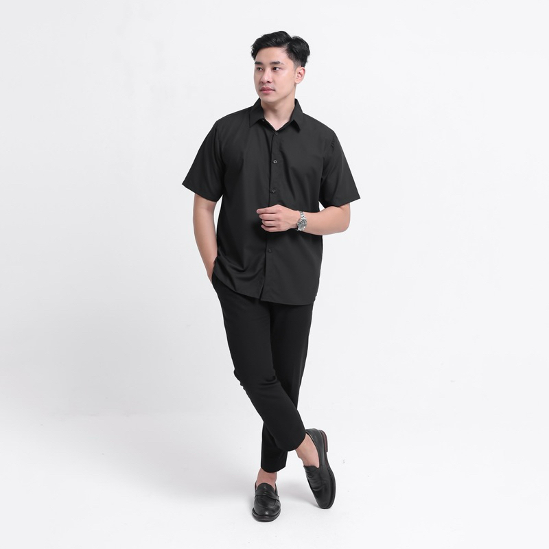 Heyplain Kemeja Hitam Lengan Pendek Slimfit - Kemeja Pria Lengan Pendek