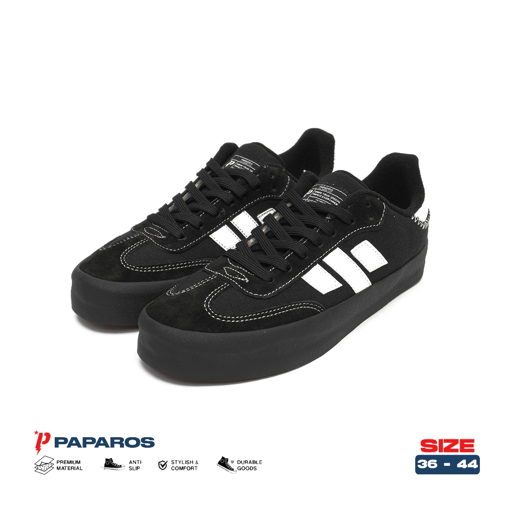 Sepatu Paparos Footwear Bassel Pro Series Black Sepatu Sneakers Vulcanize Casual Pria Wanita Material Canvas dan Suede