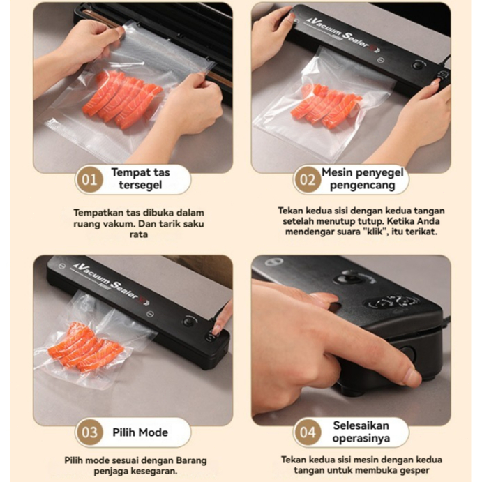 Mesin Vacuum Sealer Makanan Otomatis + 10PCS Plastik Gratis | Penyegel Vakum Segar & Basah/Kering