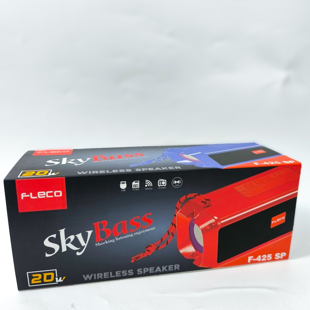 SPEAKER PORTABLE BLUETOOTH SUPER BASS SKY BASS 20WATT FLECO F-425 SP 2400MAH BATTERY CAPACITY DC 5V 1A BT AUX FM
