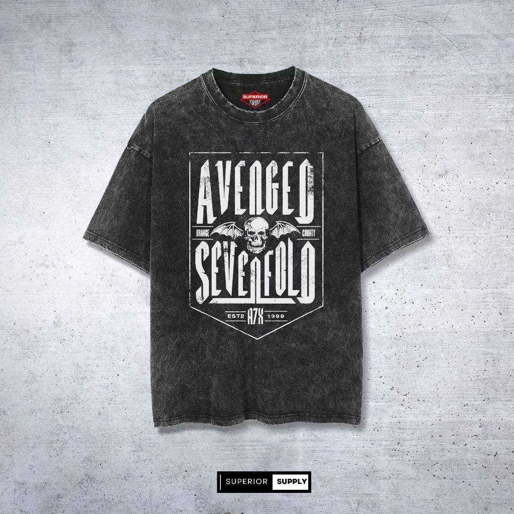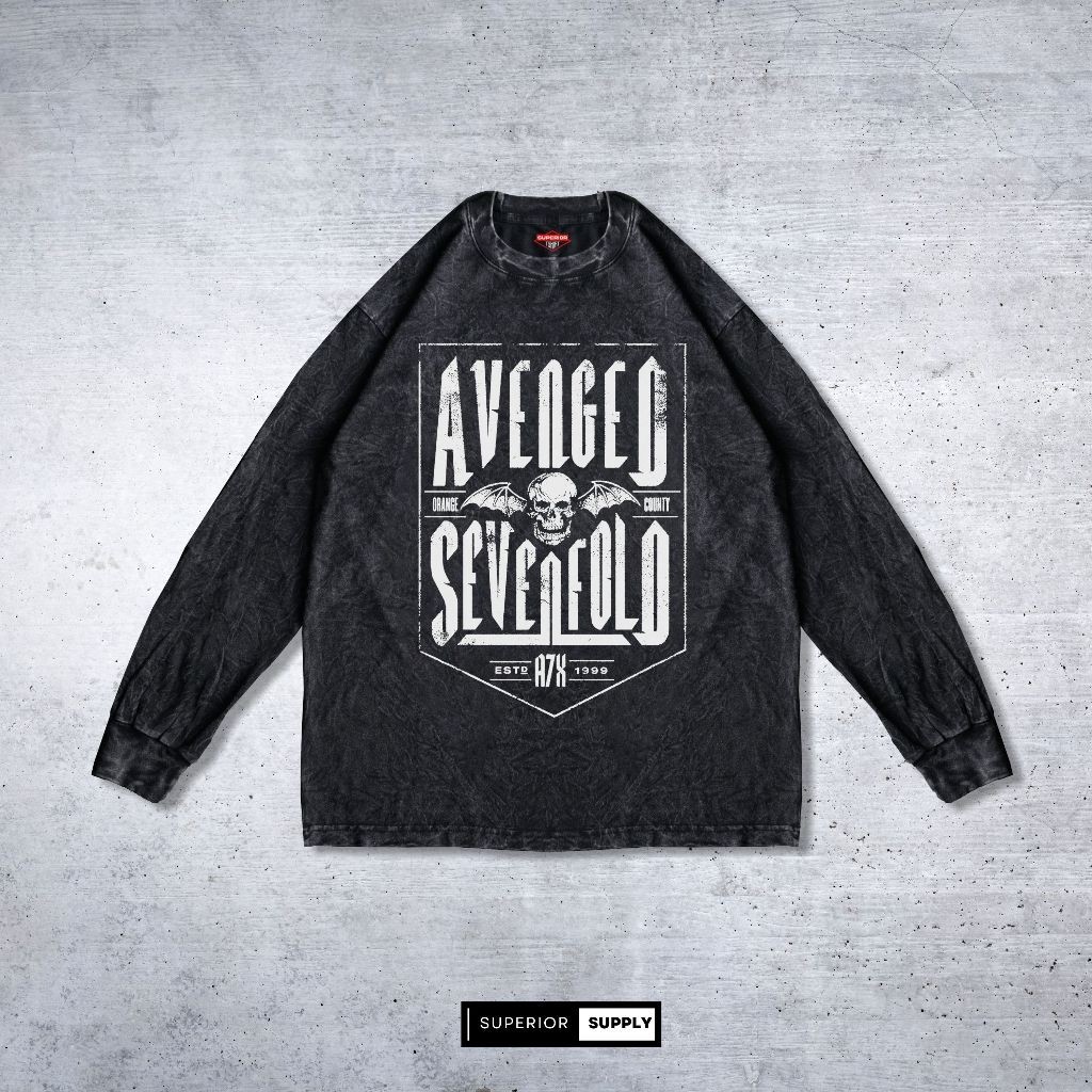 SUPERIOR KAOS AVENGED SEVENFOLD SANDWASH WASHED TSHIRT OVERSIZE & SLIM-FIT KAOS BAND MUSIK A7F-8