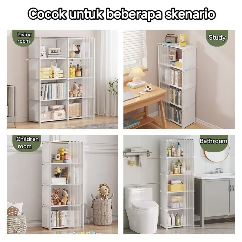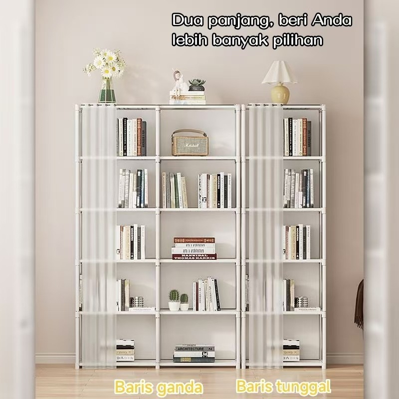 LeeGO [Dengan Tirai Anti Debu] RAK BUKU 6 SUSUN RAK MAINAN SERBAA WHITE CREAM LEMARI SERBAA LEMARI BUKU RSG 5 SUSUN RSG