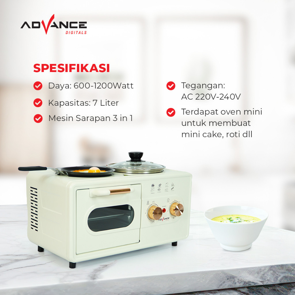Advance Peralatan Masak Serbaguna Mesin Sarapan Oven Listrik/Pan/Kompor Multifungsi 3 in 1