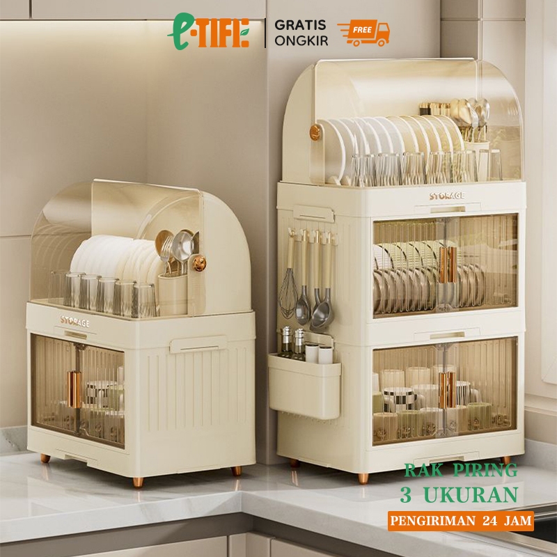 E-TIFE Rak Piring Plastik Tertutup Rak Pengering Piring Lipat Rak Cuci Piring Rak Mangkok Dapur