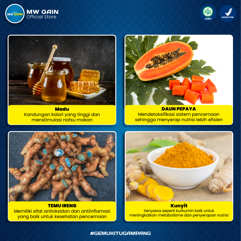MW GAIN – PAKET GEMUK SEHATISI 50 + HONEY PLUS) UNTUK MEMBANTU MENAIKKAN BERAT BADAN SECARA ALAMI