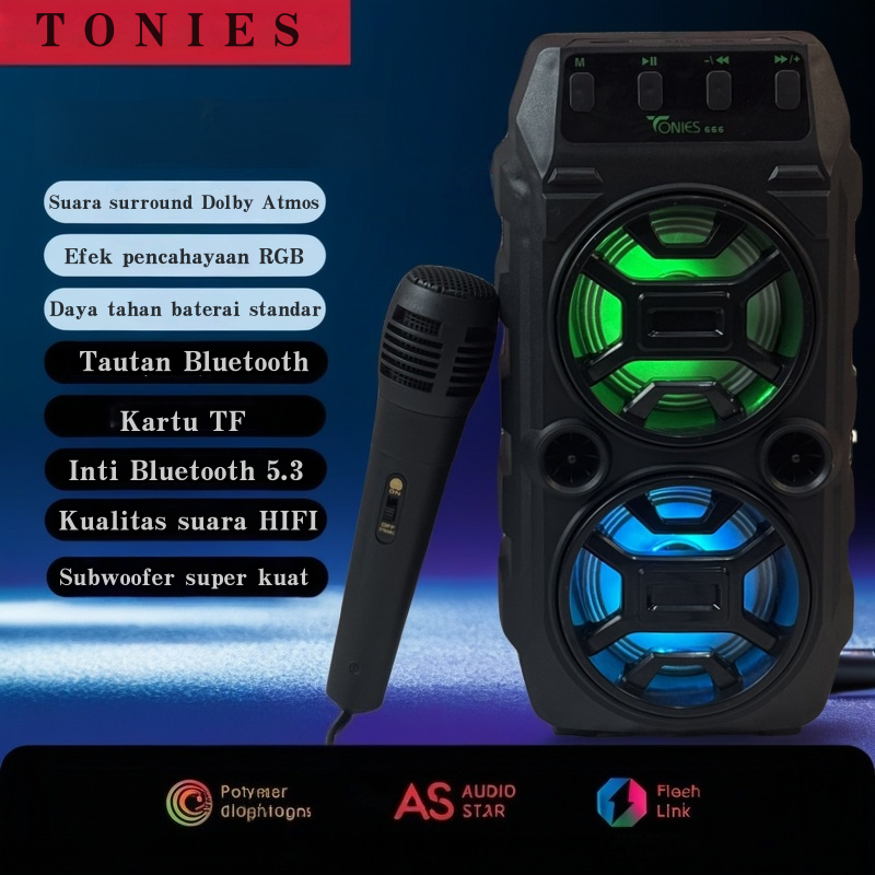 BLUETOOTH SPEAKERS TONIES-666 BONUS MIC SOUNDBAR TWS RGB LIGHTS HEAVY BASS MUSIC BATTERY POWER SOUND BOX