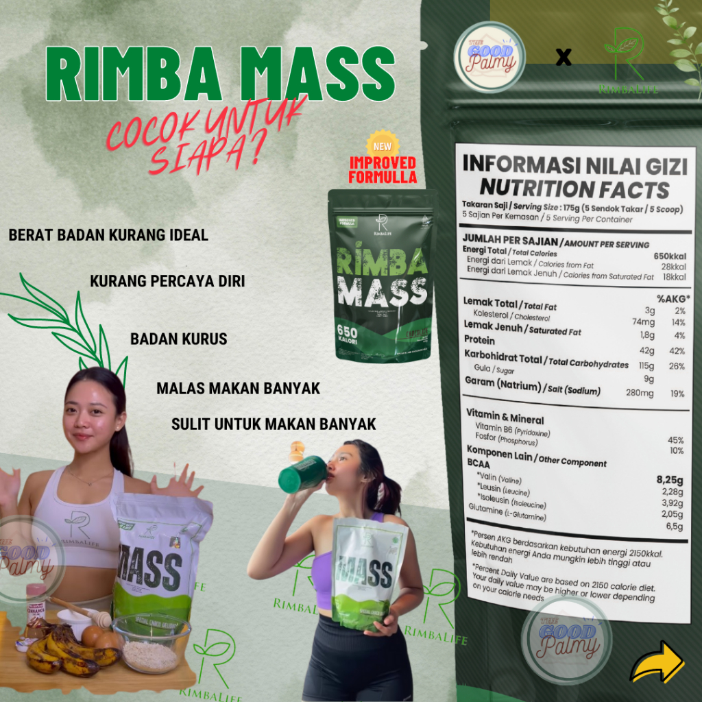 RIMBALIFE RIMBA MASS GAINER 2 LBS 912GR BY RIMBALIFE WEIGHT PENAMBAH BERAT BADAN SUPLEMENT GYM BULK