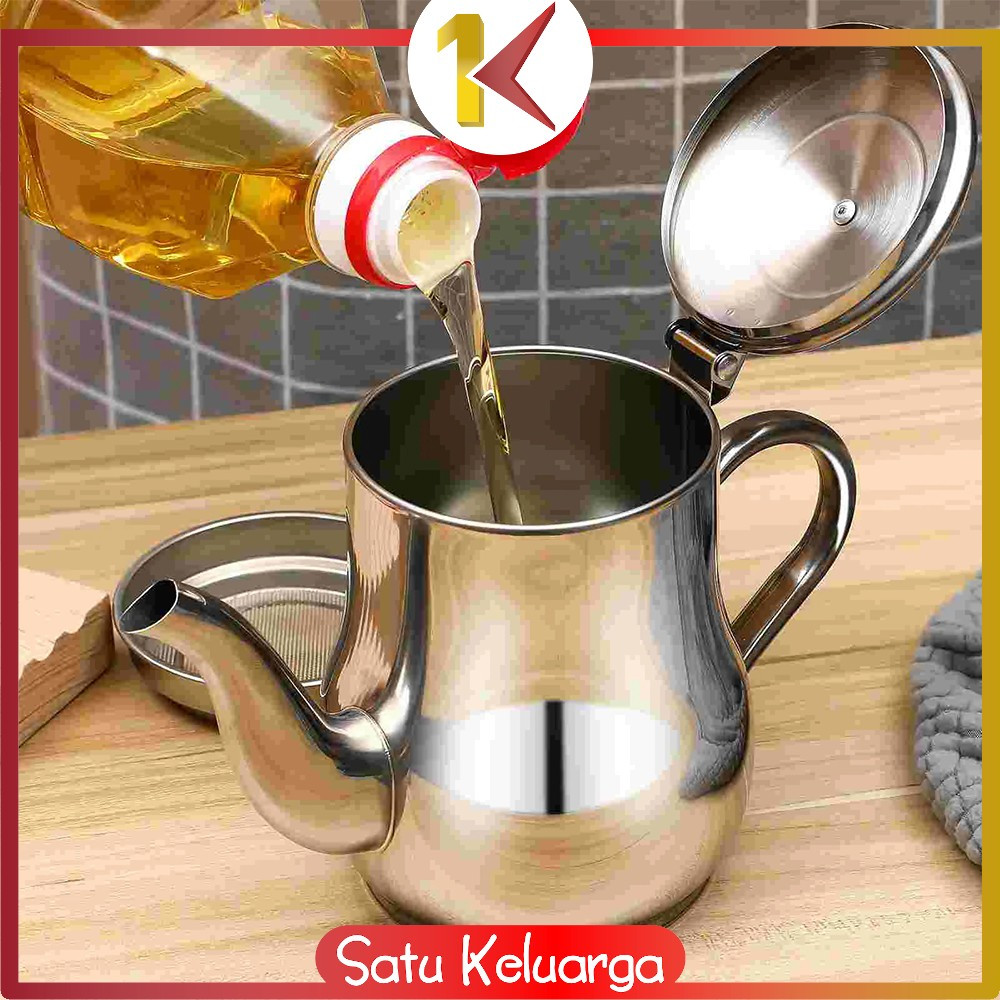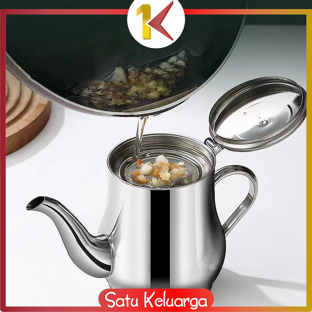 SK-C1183 Oil Pot Teko Minyak 600ML Wadah Penyaring Minyak Goreng Stainless Serbaguna / Ceret Saringan Tempat Penyaring Minyak Anti Karat
