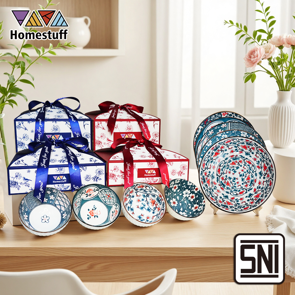 [SNI] HOMESTUFF Hampers Set Piring dan Mangkok Mewah / Set Peralatan Makan Keramik / Hadiah Peralatan Makan / Hampers Hadiah / Kotak Kado