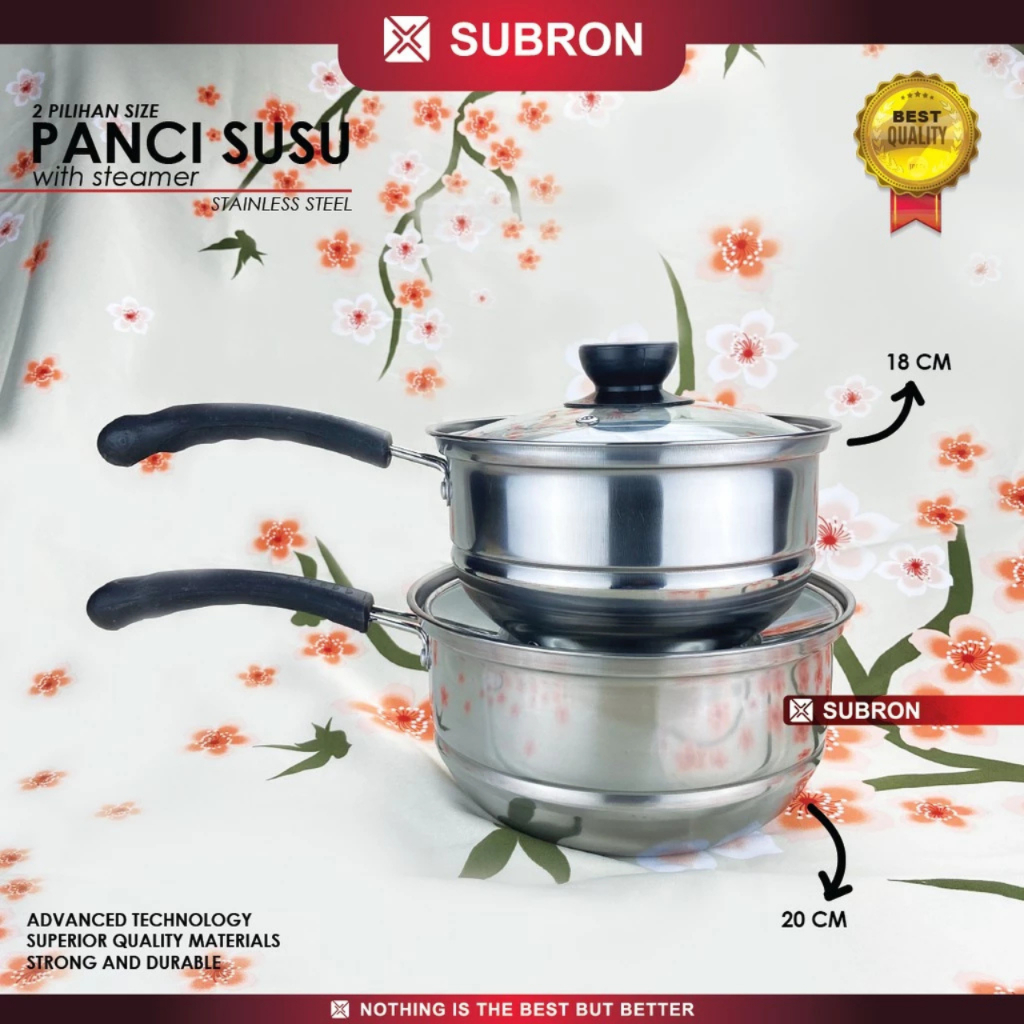 SUBRON Panci Susu Milk Pot Steamer Kukus 18cm 20cm Stainless Kukusan Makanan Masakan Untuk Kompor Induksi Kompor Gas