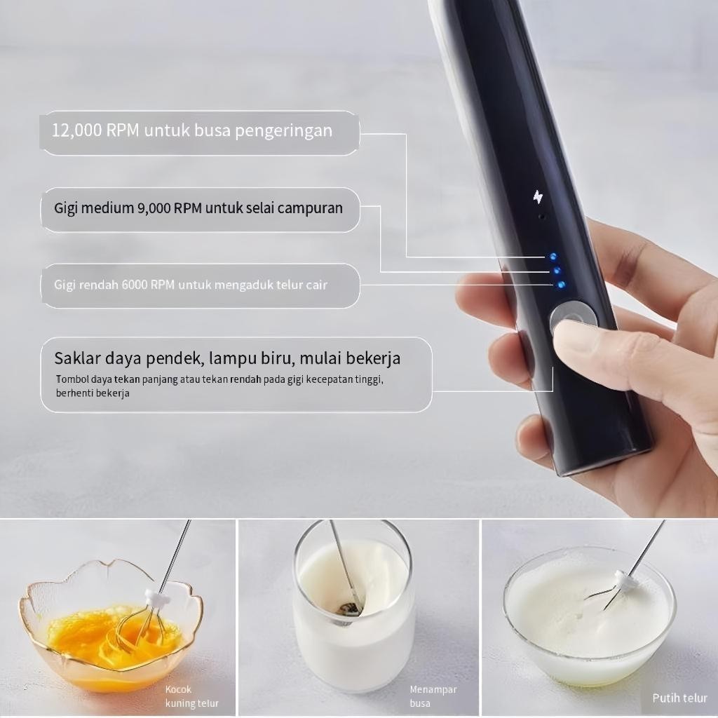 XFONE Whisk Pembuih Susu Pengocok Telur hand mixer mixer kopi Hand Mixer Mini 2 in 1 Pengocok Telur Whisk Milk Frother isi ulang USB Blender
