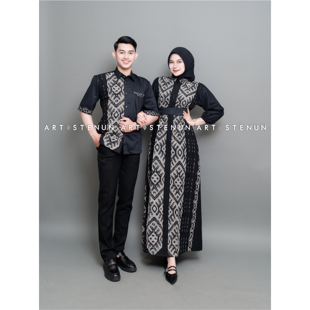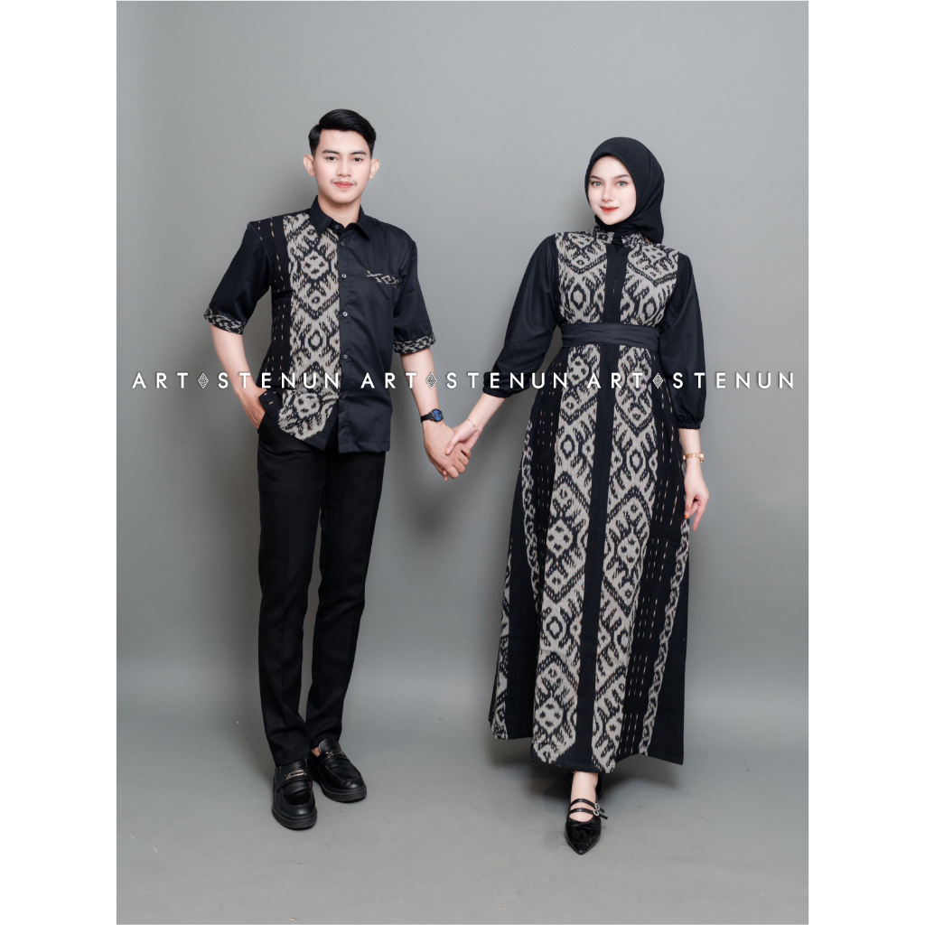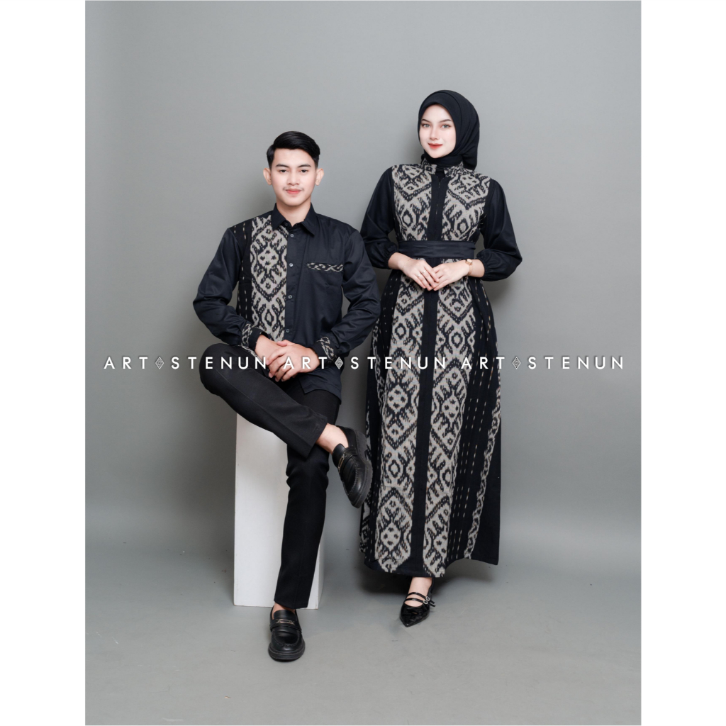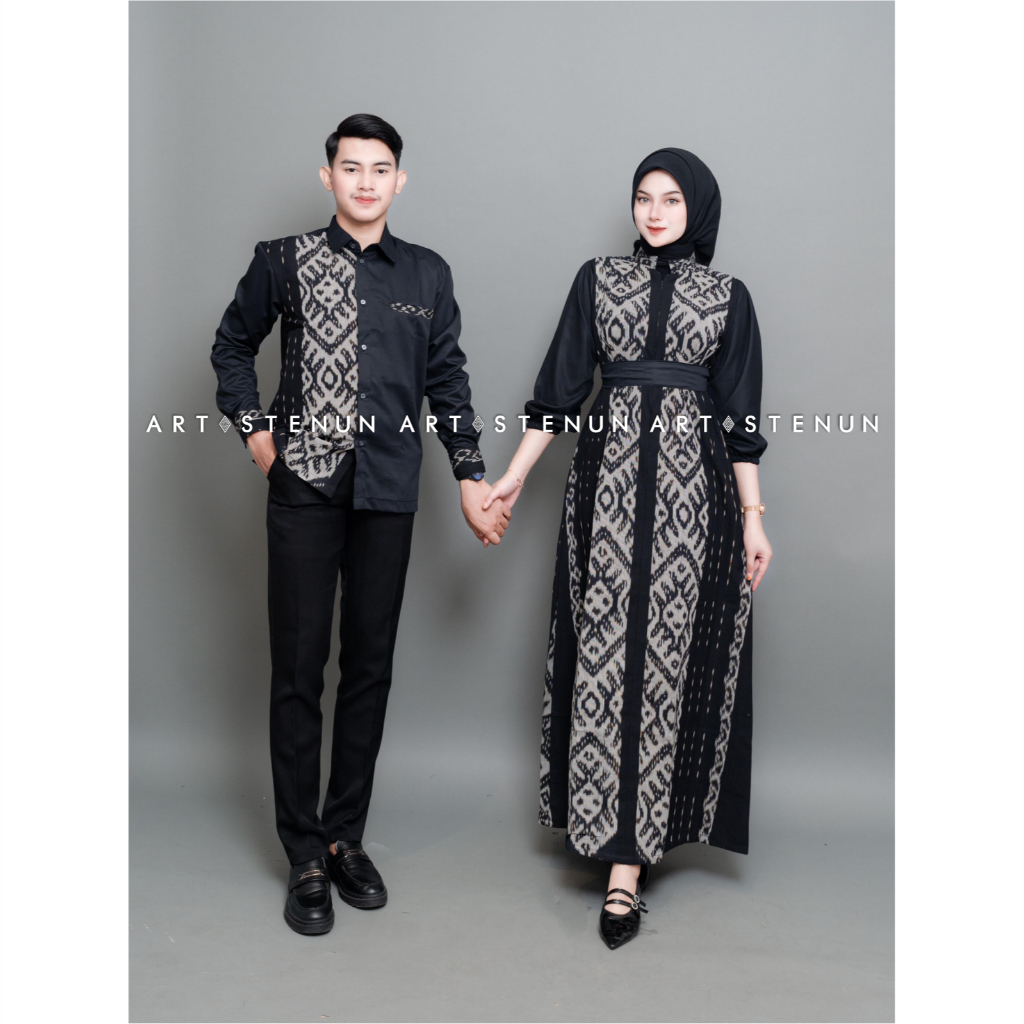 BAJU TENUN BELVIA DRESS COUPLE BLACK PANJANG BAJU KONDANGAN PREWED TUNANGAN SET COUPLE TENUN TERBARU