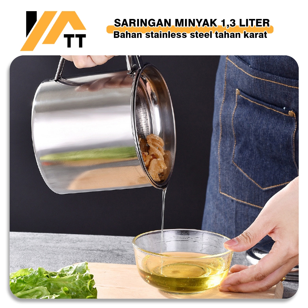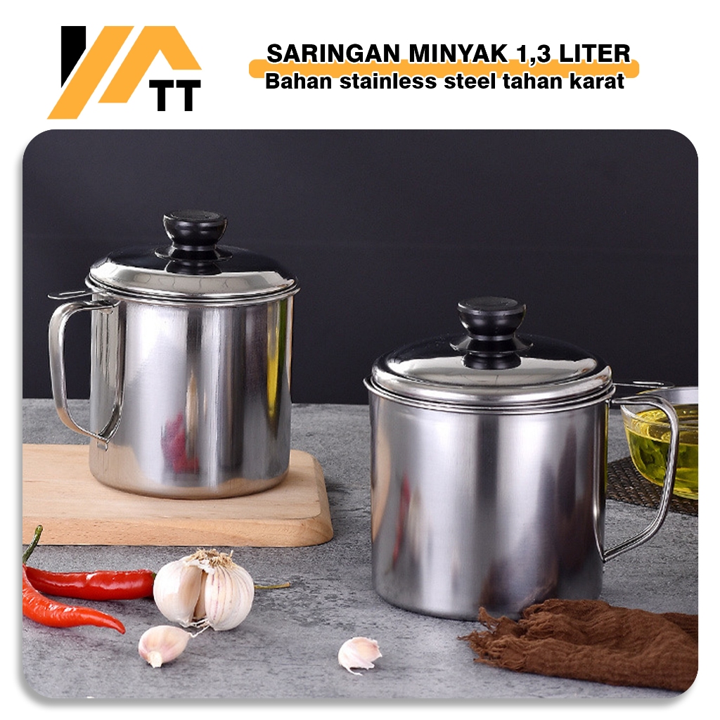 YATT Wadah Saringan Minyak Bahan Stainless Steel / Oil PotTempat MInyak Jelantah 1.3L Tebal dan Kuat